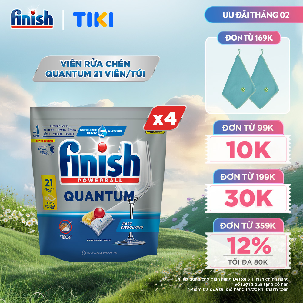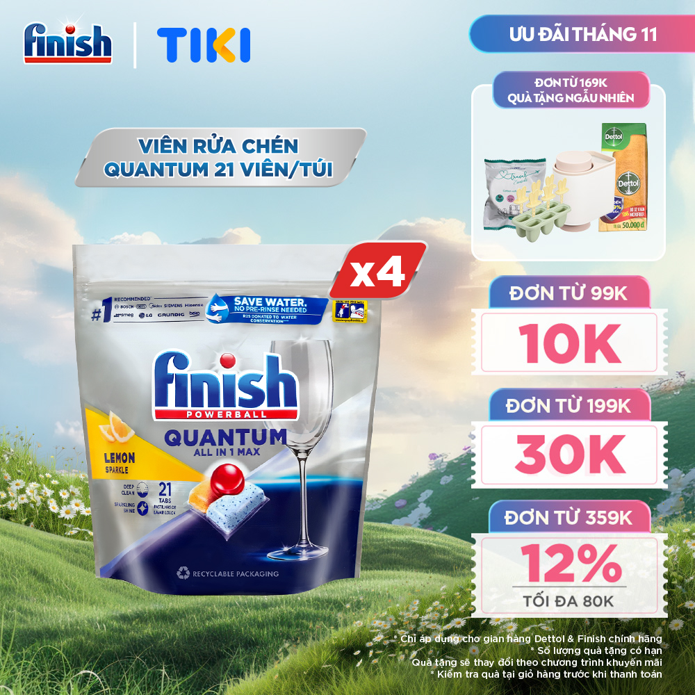 Thông số kỹ thuật Combo 4 túi Viên Rửa Chén Bát Finish Powerball Quantum 21 viên