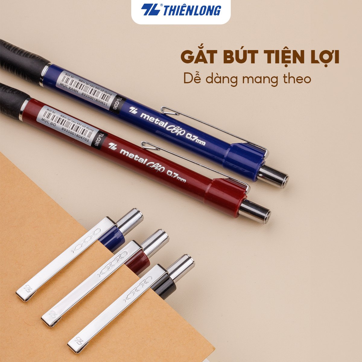 Thông số kỹ thuật Combo 5-10-20 Bút Bi Thiên Long Metal Clip TL-036 đầu bi 0.7mm