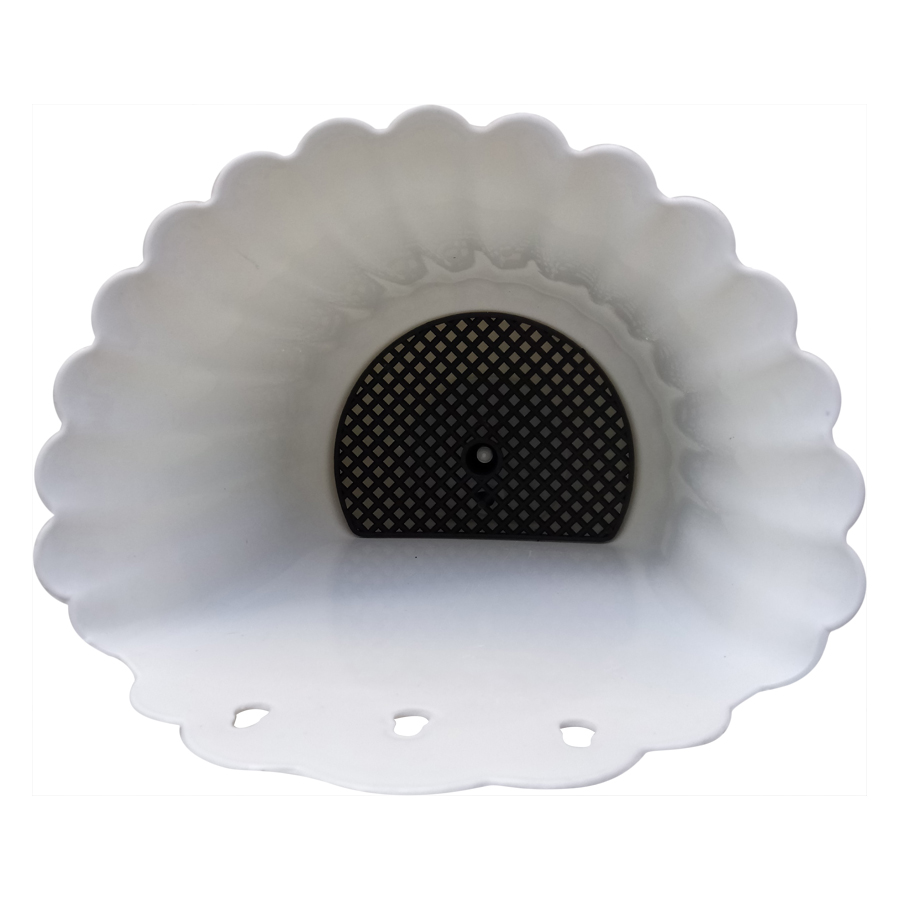 - Chậu ốp tường được thiết kế theo dáng nụ hoa với mặt phẳng phía sau, có ba lỗ để bắt vít vào tường.