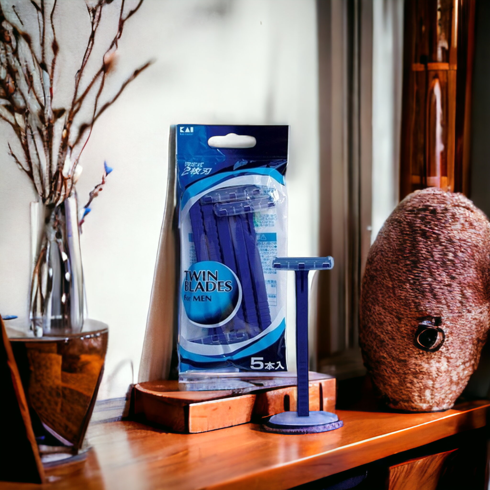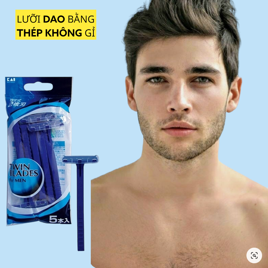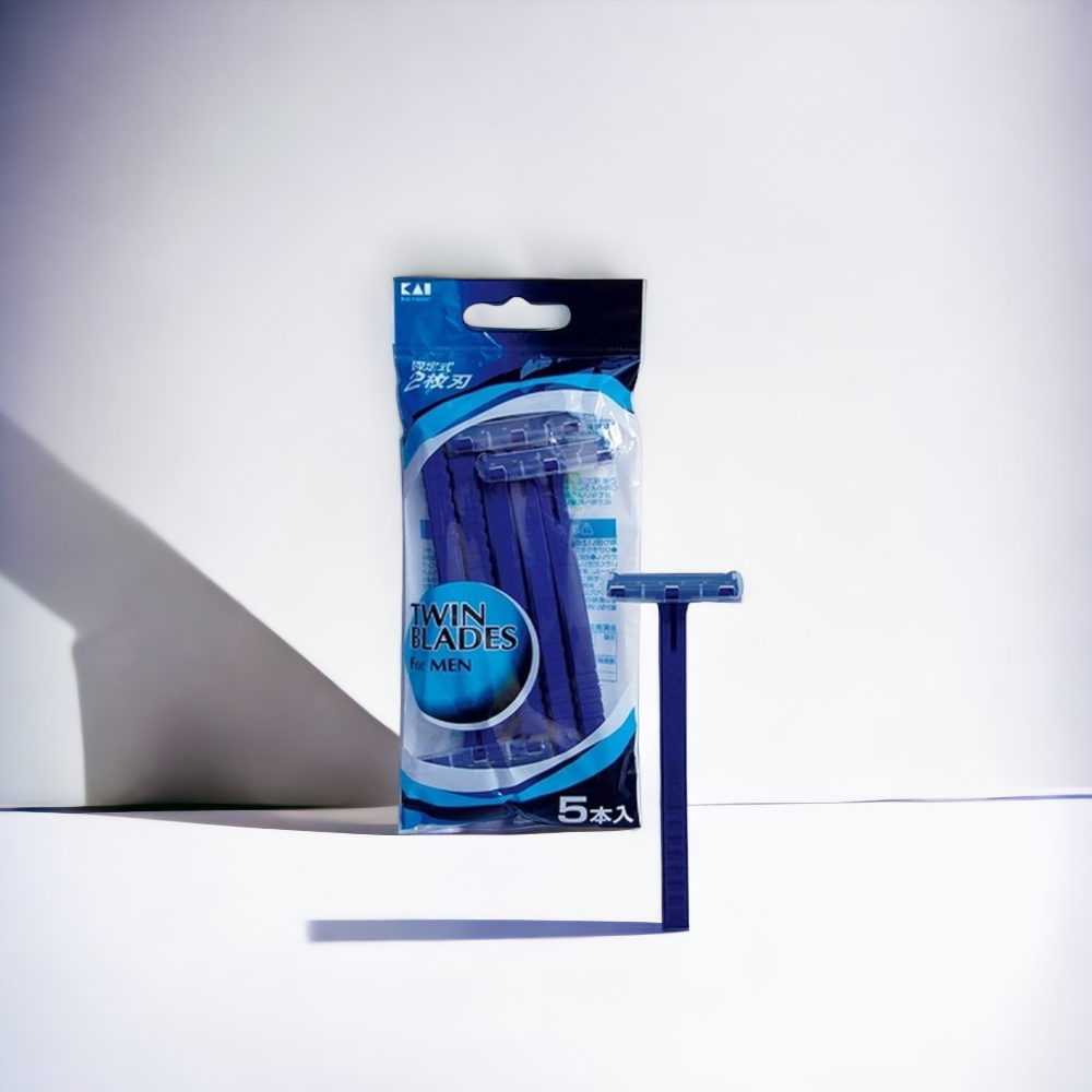 Dao Cạo Râu Thân Nhựa 2 Lưỡi Kép Kai Razor Twin Blades 012534 Dành Cho Nam (Set 5 cây)