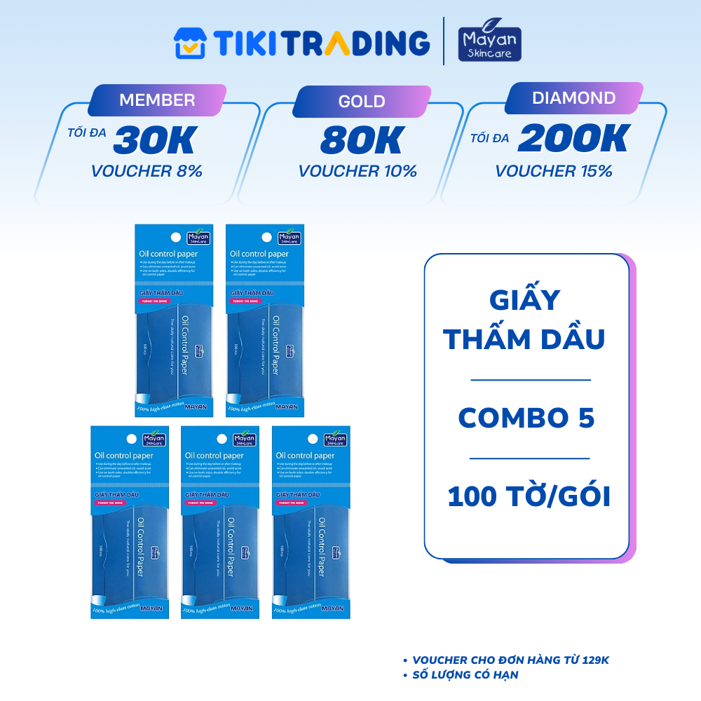 - Combo 5 Giấy Thấm Dầu Mayan (100 Tờ / Gói) có khả năng thấm dầu sạch trên da, lấy đi những bả nhờn và, bụi bẩn trên da hiệu quả, ngăn ngừa mụn và bảo vệ lớp trang điểm. Chất giấy mềm mỏng, không gây độc hại và không gây kích ứng cho da.