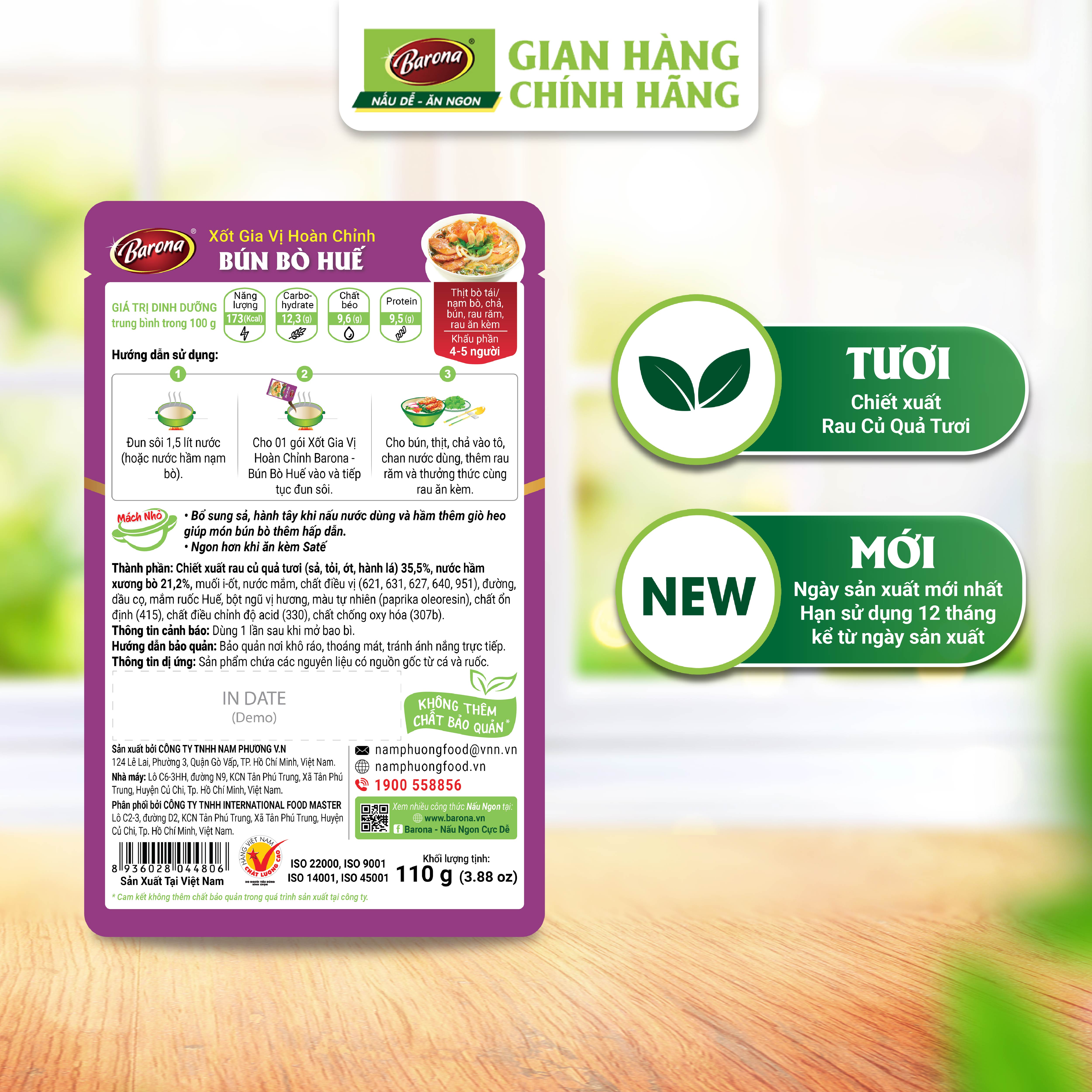 Gia Vị Bún Bò Huế Barona 110g tươi ngon chuẩn vị không cần nêm nếm