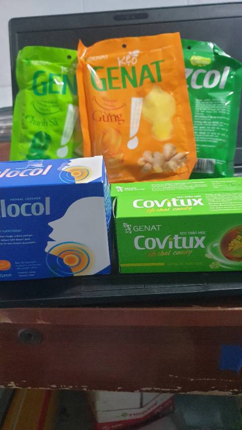 Thông số kỹ thuật Combo 5 sản phẩm kẹo Genat - Kẹo thảo mộc Covitux, Gezcol , Genat Gừng, Genat chanh sả, viên ngậm Zalocol hỗ trợ giảm ho, giảm đờm, đau rát họng