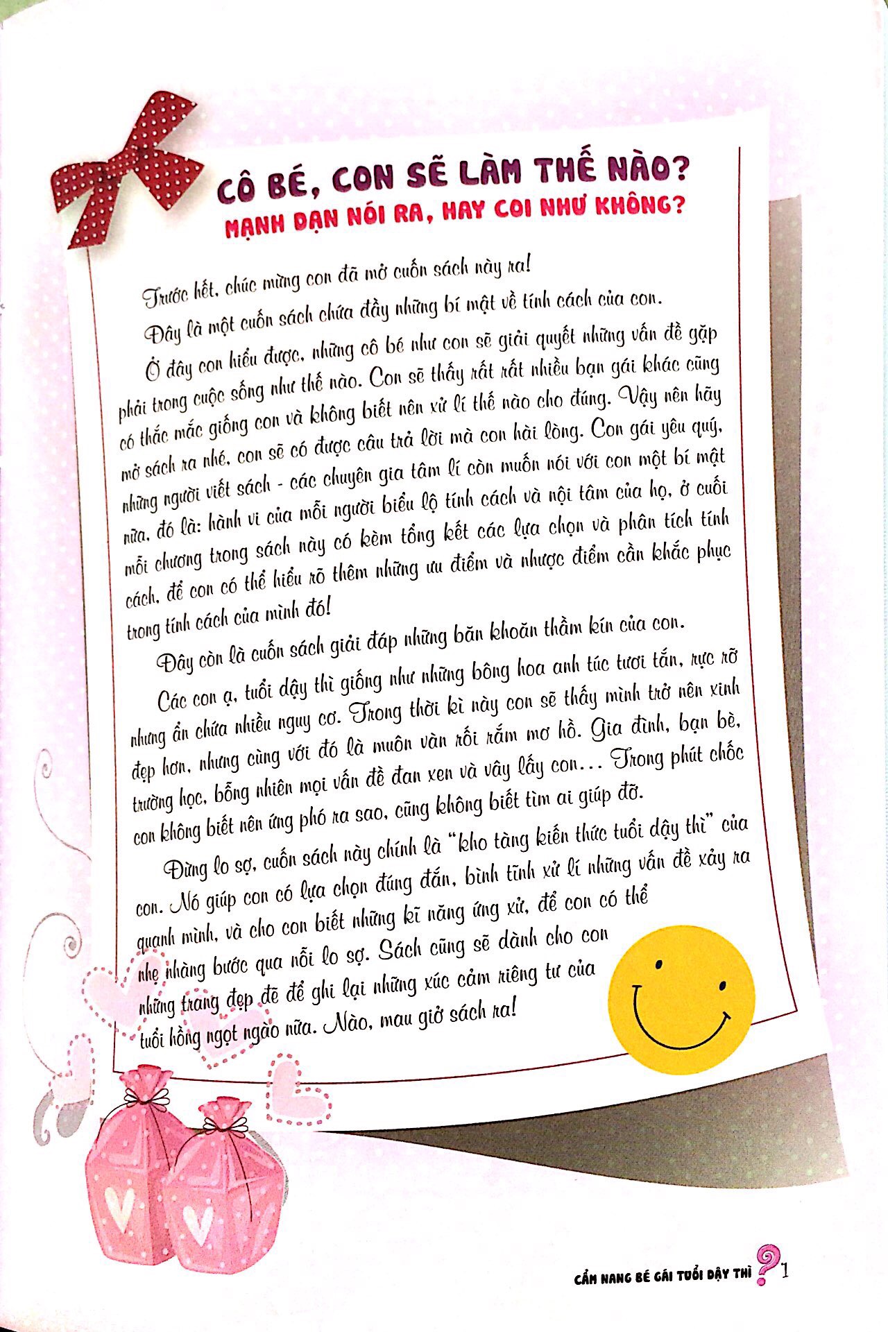 - Đây là những cuốn cẩm nang quý giá giúp các bậc phụ huynh cùng những cô gái nhỏ của mình bước vào tuổi dậy thì tươi đẹp với tâm lí sẵn sàng và thoải mái!