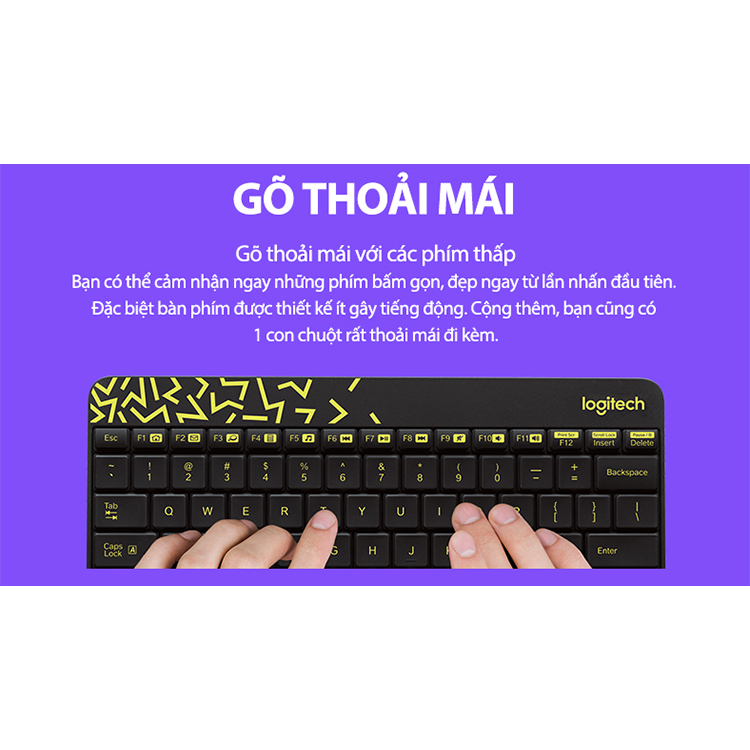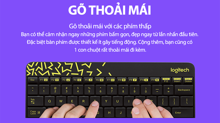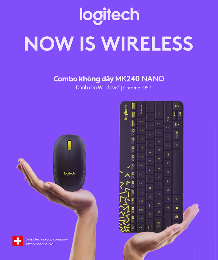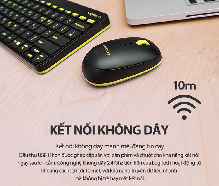 Combo chuột phím không dây Logitech MK240 với công nghệ không dây Logitech 2.4GHz truyền dữ liệu nhanh chóng, mã hóa không dây và không bị trễ hay mất kết nối. Chuột và bàn phím sẽ tự động kết nối với receiver trong môi trường có nhiều kết nối khác.