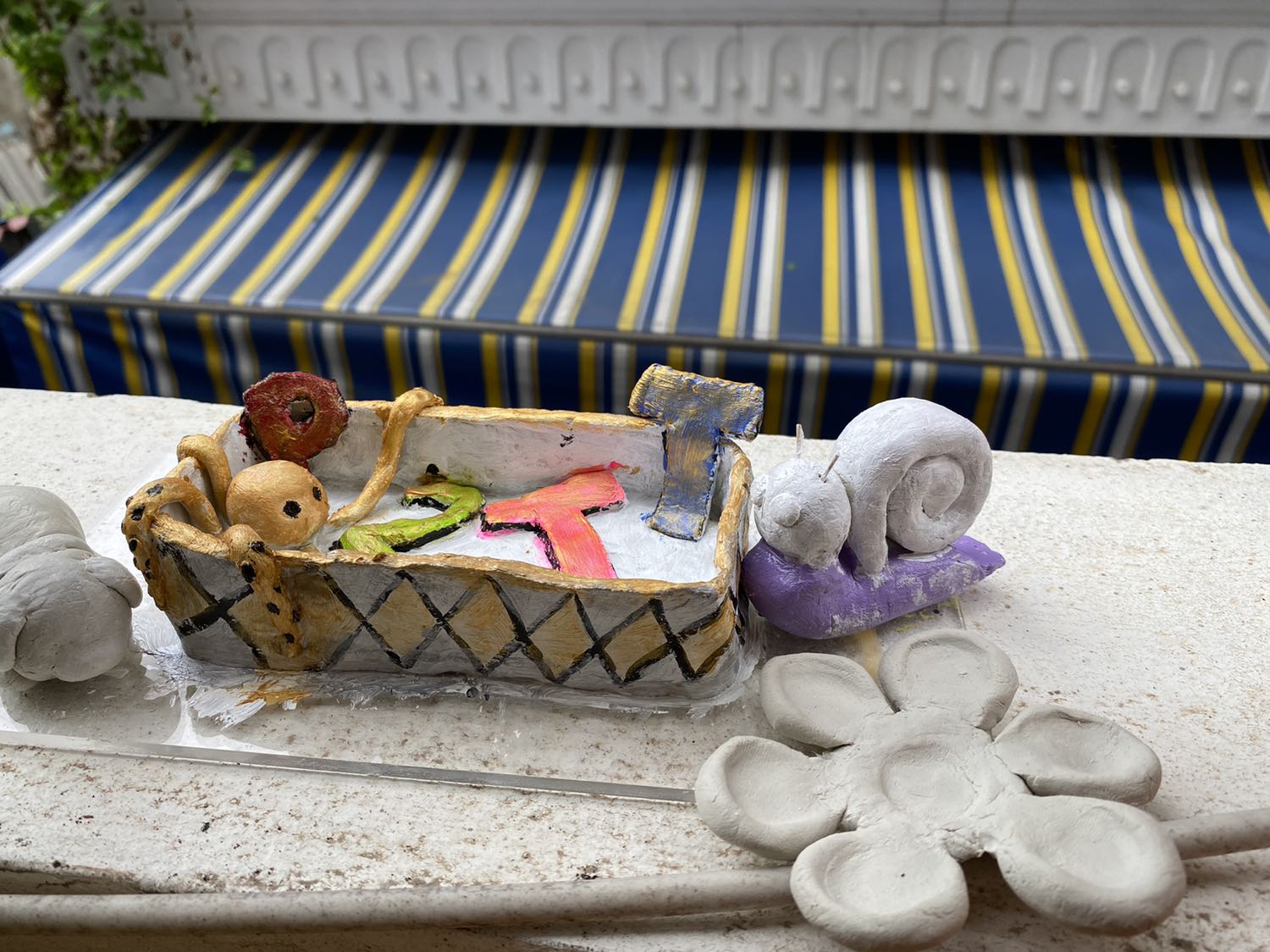 + Đất sét thích hợp để điêu khắc, có thể chà nhám, khoan và sơn vẽ bằng màu nước, màu acrylic sau khi khô.