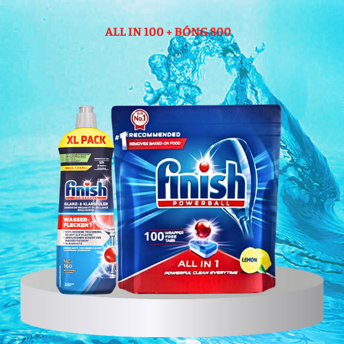 Combo: Viên rửa bát Finish All in one 100 viên + Dầu làm bóng finish 800ml