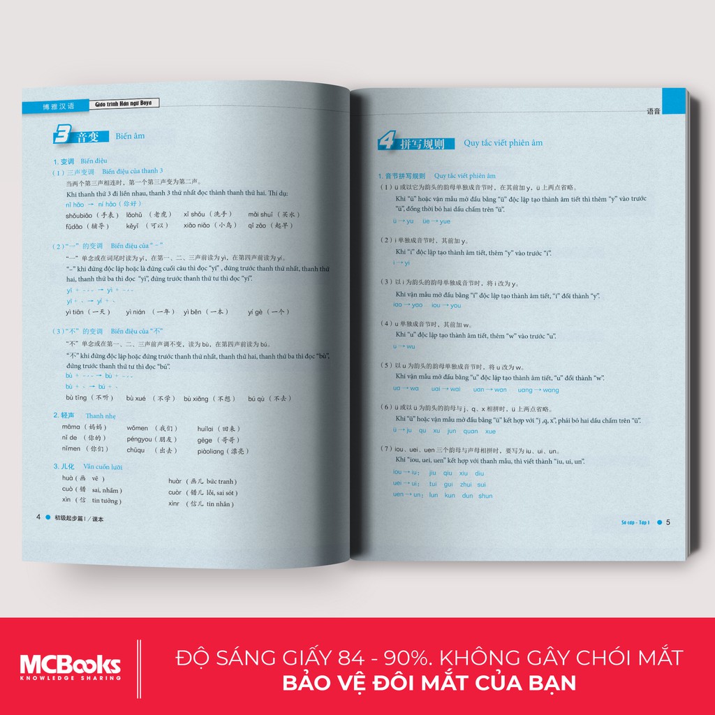 Sách nhà MCBooks sản xuất thì khỏi nói, đẹp từ chất giấy, nét chữ cho đến bố cục khoa học ngắn gọn, dễ hiểu. Cấu trúc ngữ pháp Hán ngữ BOYA được trình bày khá chi tiết, các dịch giả Việt Nam đã dịch sẵn luôn cả phần bài hội thoại và có phần phiên âm tiếng Trung cho mỗi bài hội thoại trong từng bài học cơ bản.