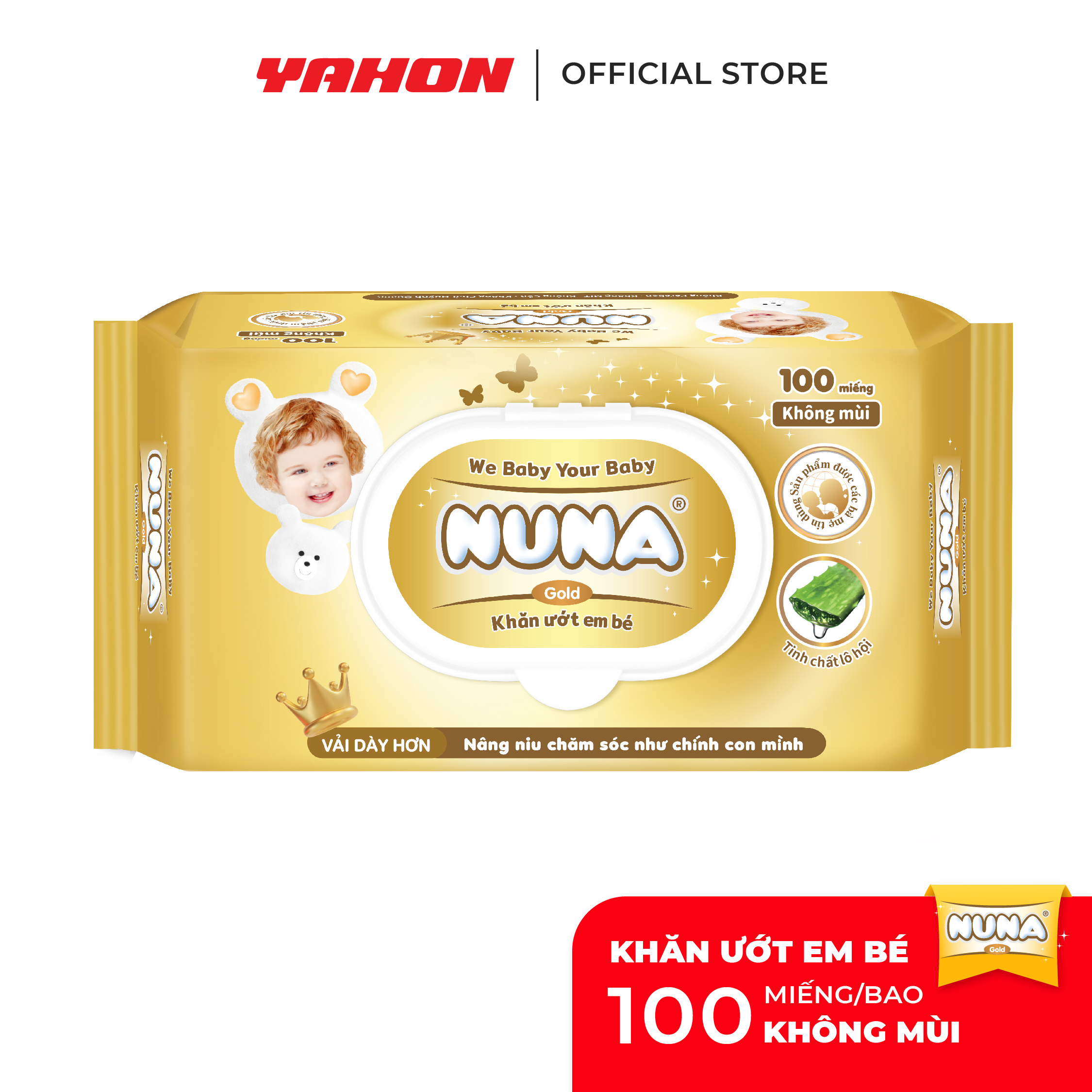 KHĂN ƯỚT EM BÉ NUNA GOLD 100 MIẾNG - KHÔNG MÙI (MÀU VÀNG)