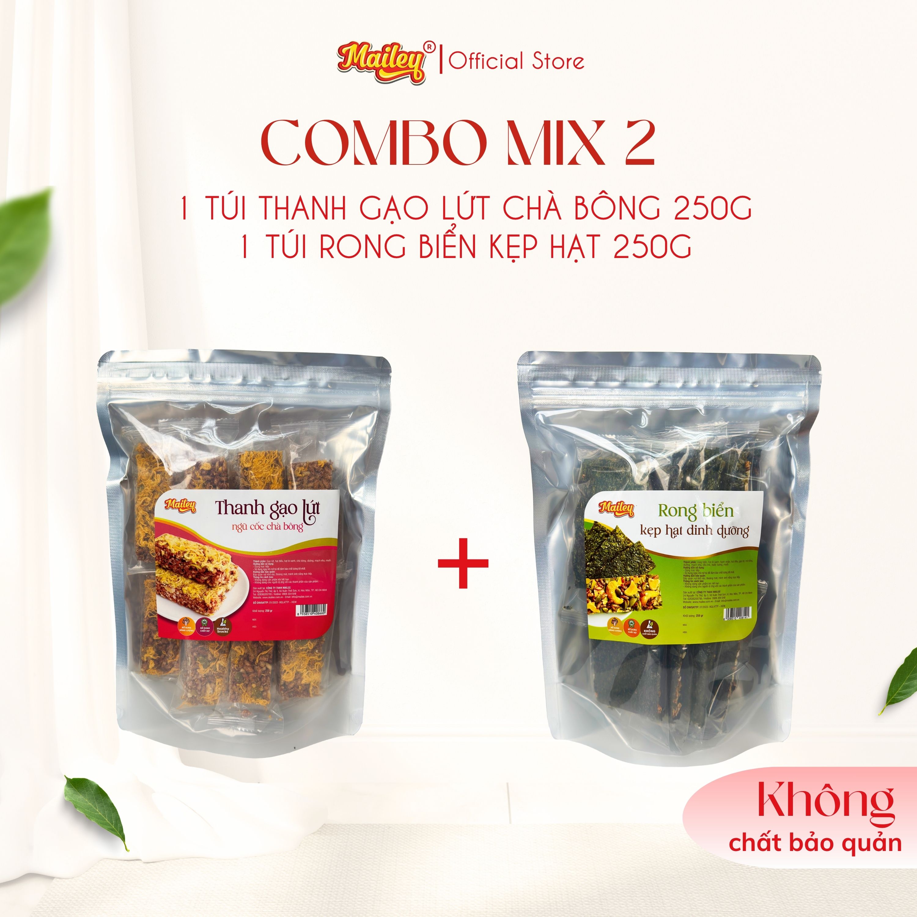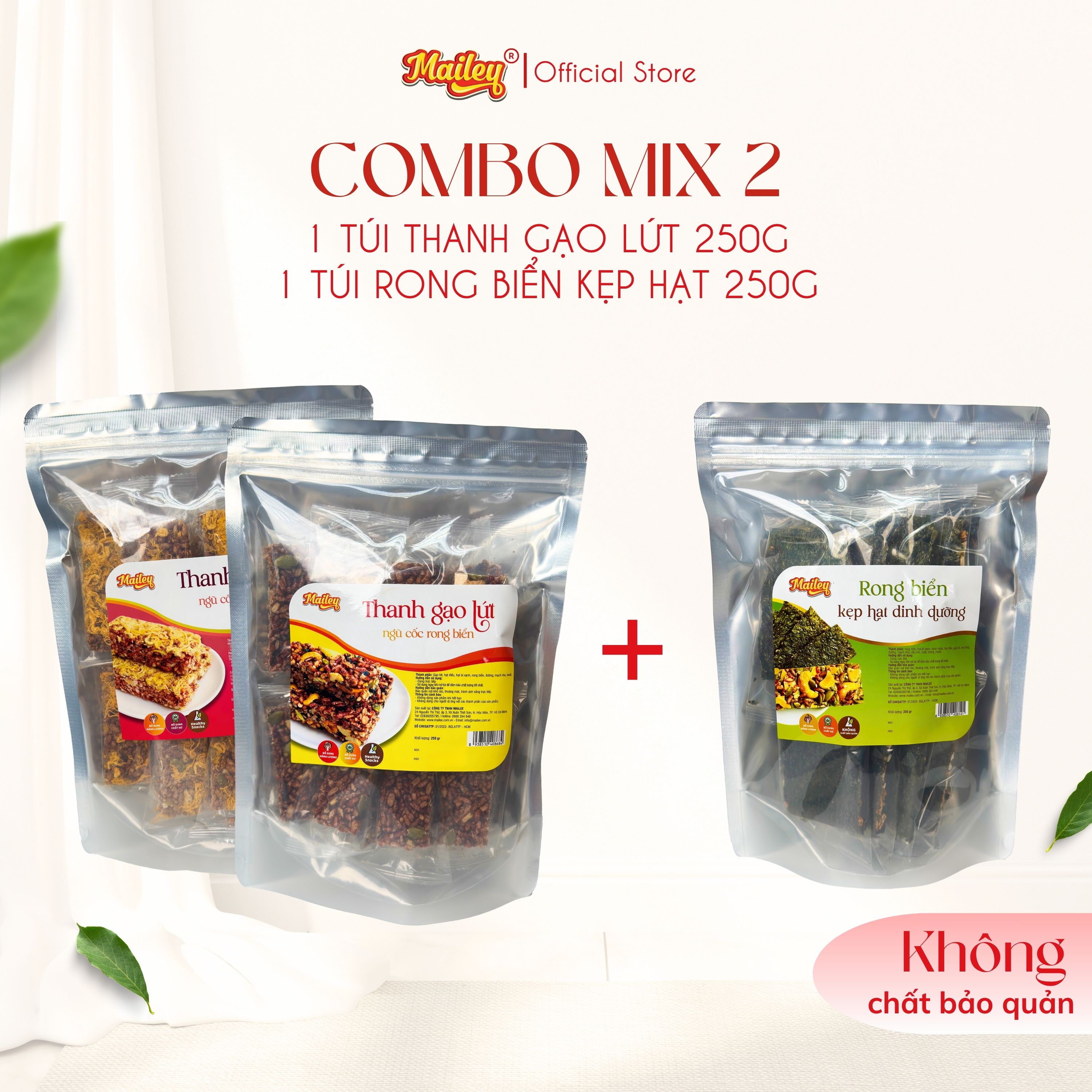 [COMBO MIX 2] Rong biển kẹp hạt dinh dưỡng 250g + Thanh gạo lứt chà bông/rong biển mix hạt 250g Mailey