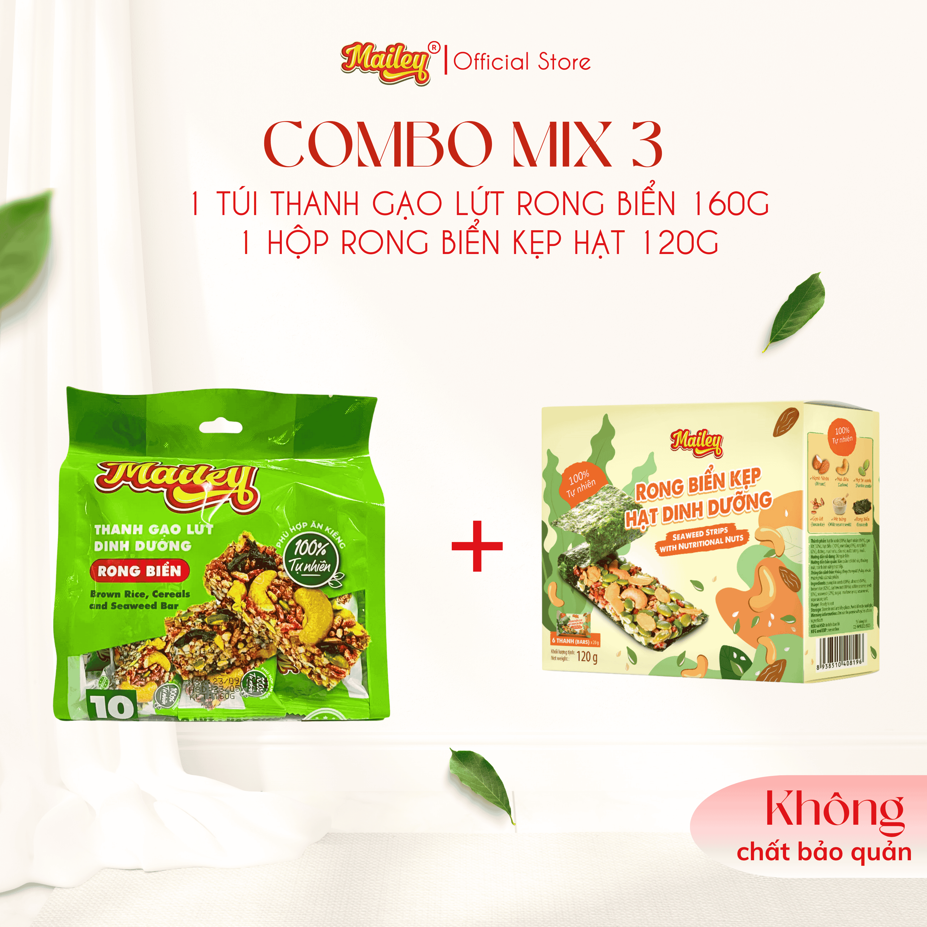 [COMBO MIX 3]Rong biển kẹp hạt dinh dưỡng 120g + Thanh gạo lứt chà bông/rong biển mix hạt 150g Mailey