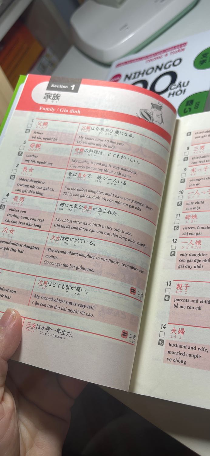 Bộ sách học từ vựng cấp độ N5 ~ N1 dành cho Kỳ thi Năng lực Nhật ngữ. Bộ sách gồm 5 cuốn: N1, N2, N3, N4, N5, tập hợp các từ vựng xuất hiện thường xuyên trong các kỳ thi Năng lực Nhật ngữ. Các từ vựng này được chia theo từng chủ đề, đi kèm các câu ví dụ. Đặc biệt bộ sách có kèm theo bản dịch Anh - Trung - Việt, rất tiện cho các bạn tự học ở nhà.