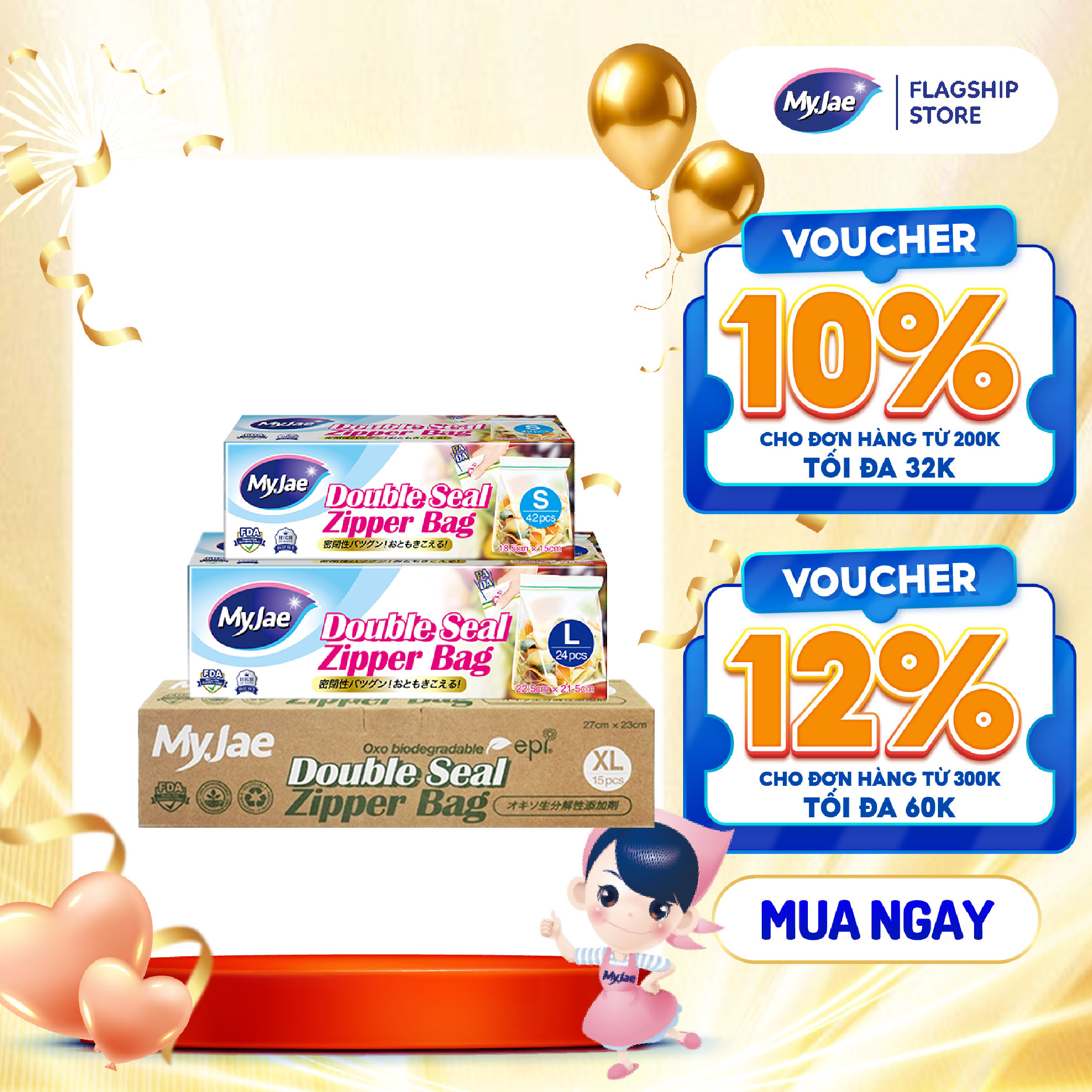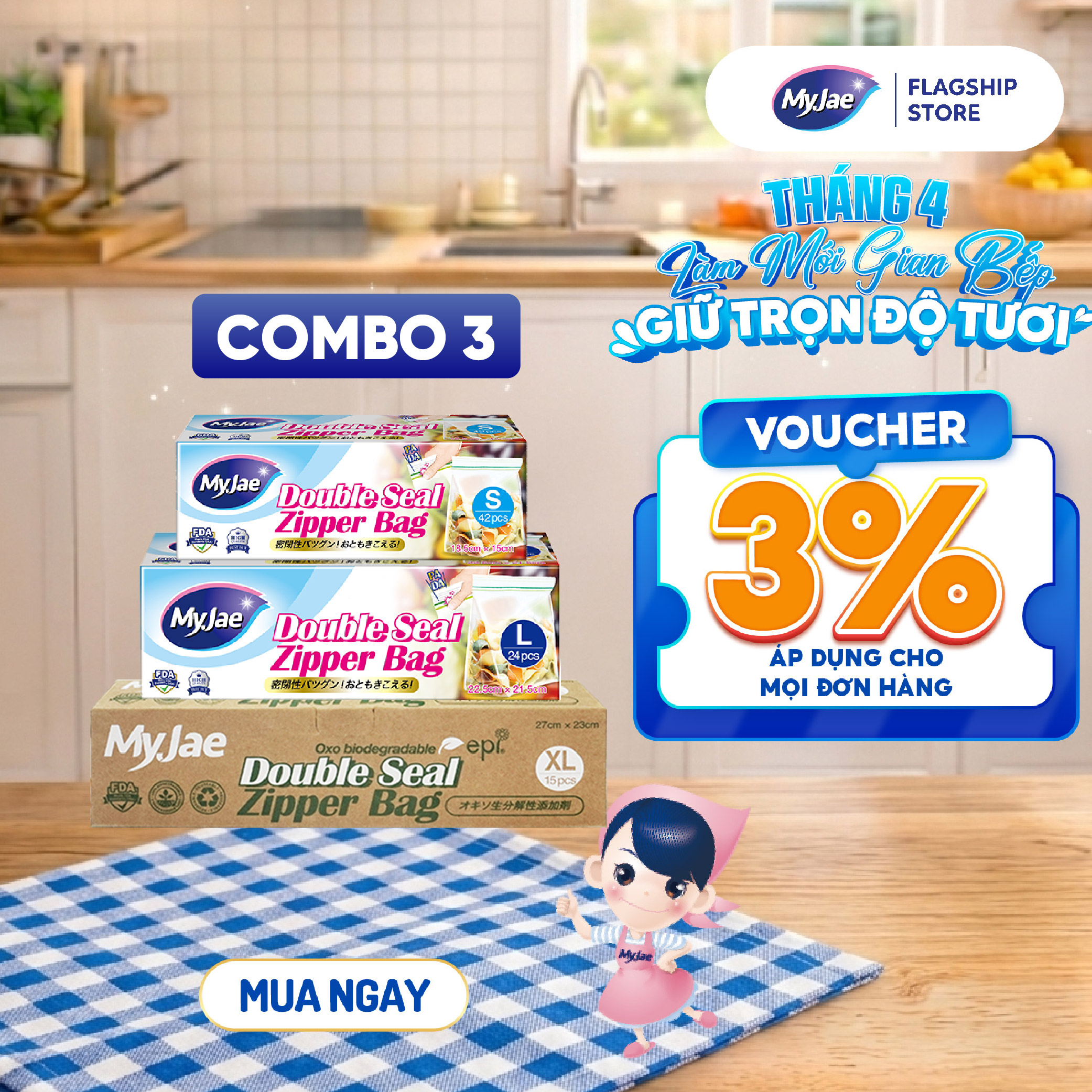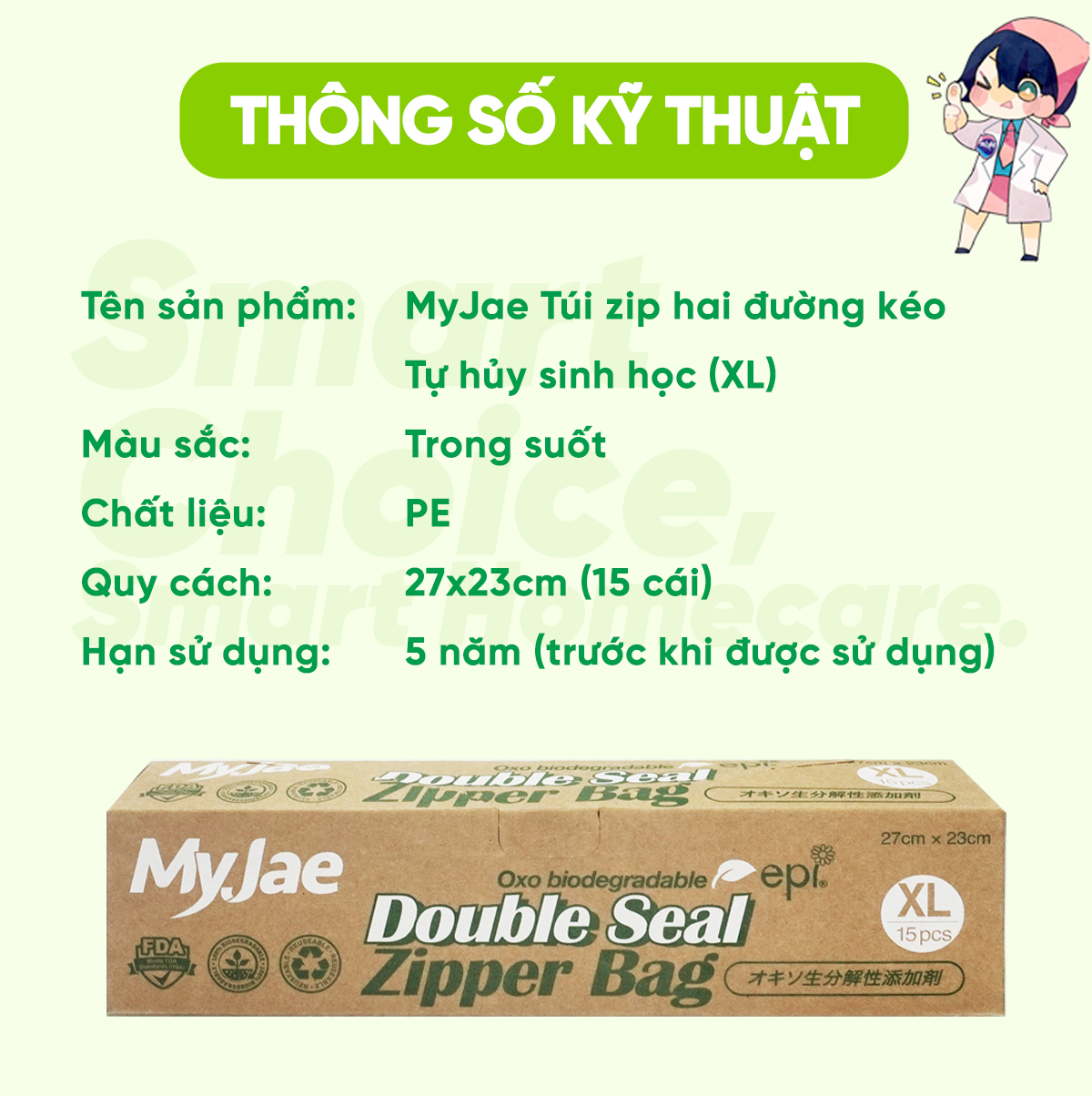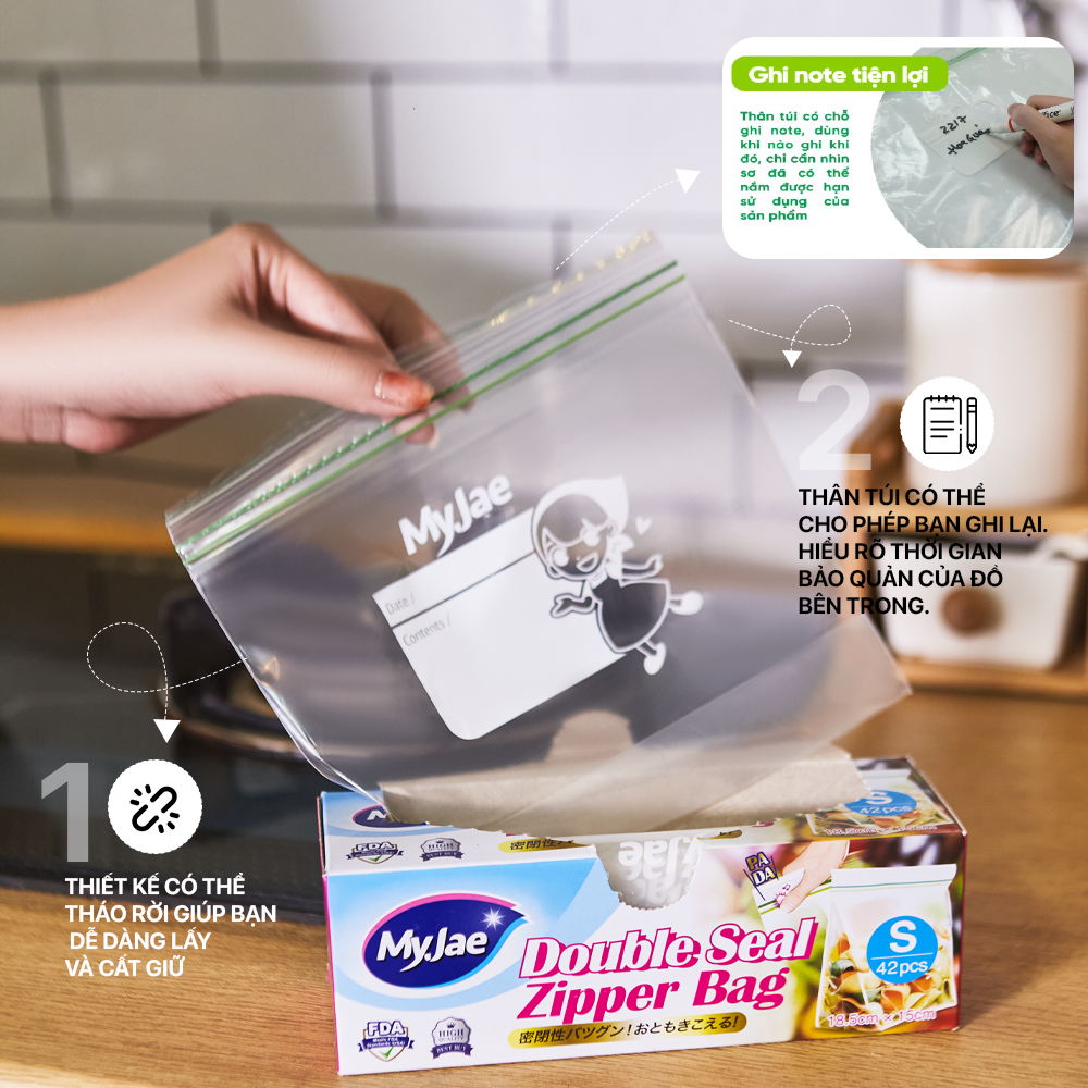 Thông số kỹ thuật Túi Zip PE Trong Suốt 2 Đường Kéo MyJae, Túi Bọc Đồ Ăn, Rau Củ Bảo Quản Trong Tủ Lạnh
