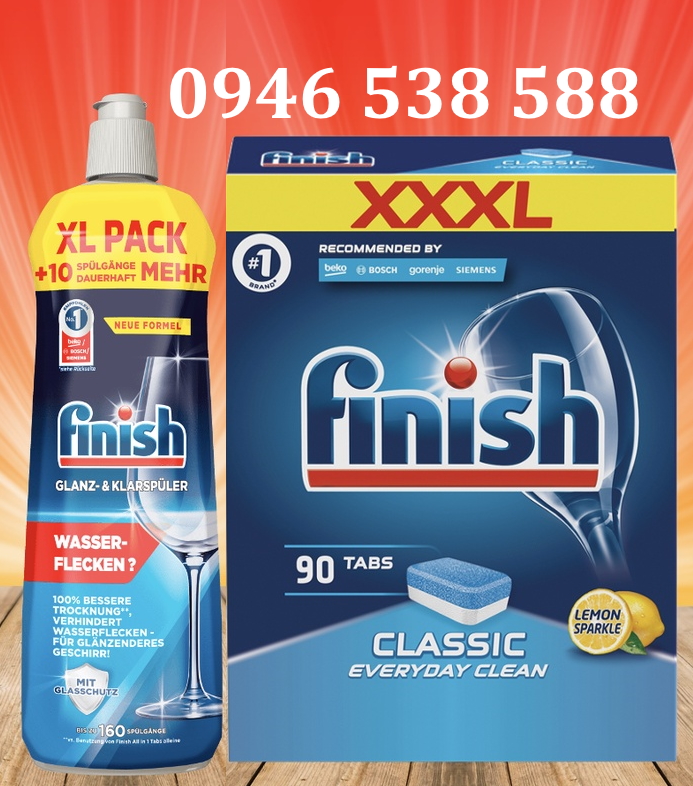- Viên rửa bát Finish là viên rửa bát tổng hợp 3 chức năng tẩy rửa, tổng hợp cả Muối làm mềm nước và Nước làm bóng. Tuy nhiên đối với những vùng có nước nặng, nhiều kim loại, hãng Finish khuyến cáo nên sử dụng thêm sản phẩm Muối làm mềm nước để bảo vệ máy khỏi cặn vôi giúp nâng cao tuổi thọ của máy rửa bát. Nước làm bóng tác dụng hỗ cho viên rửa bát giúp quá trình rửa sạch hơn, bóng sáng và khô bát hơn