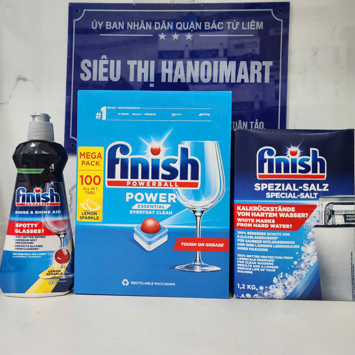 Combo: Viên rửa bát Finish Nhật 150 viên + Nước làm bóng finish 400ml +Muối rửa bát finish 1.2kg cho Máy rửa bát chén là bộ 3 sản phẩm đầy đủ chức năng nhất hiện nay