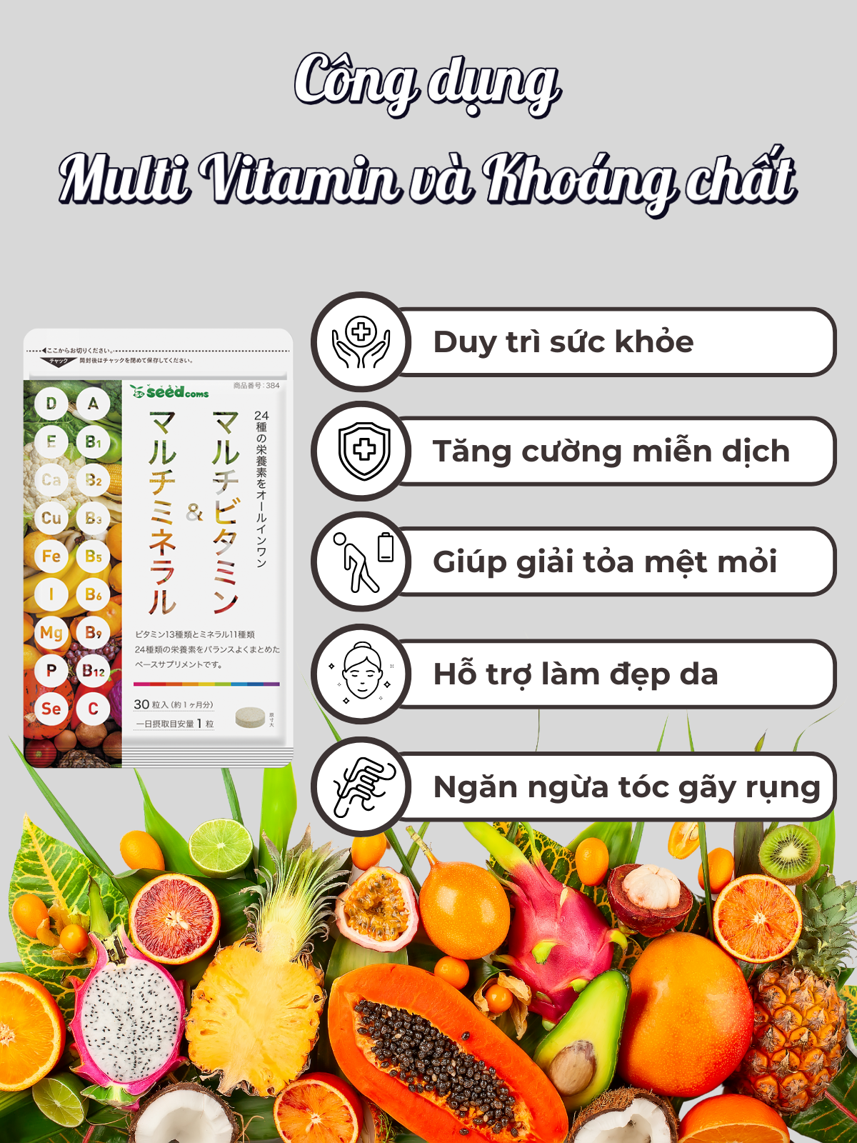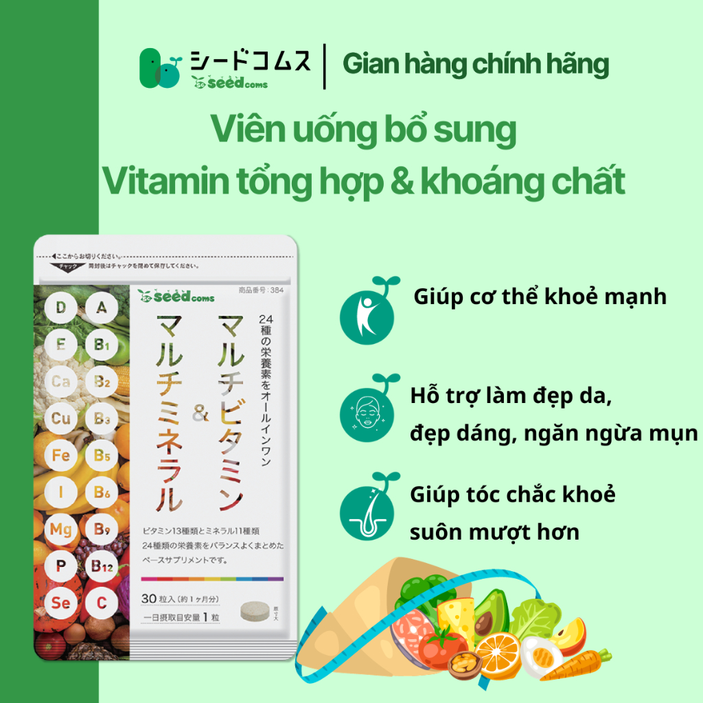 5. Viên Uống Bổ Sung Multi Vitamin Và Khoáng Chất Hỗ Trợ Tăng Cường Sức Khỏe Và Làm Đẹp Seedcoms Nhật Bản Gói 30 Viên