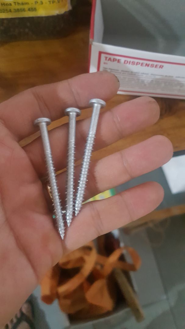 - Vít đầu dù, phi 5mm, dài 60mm. Thân vít rất cứng và tự tạo răng bám chặt vào trần, tường.