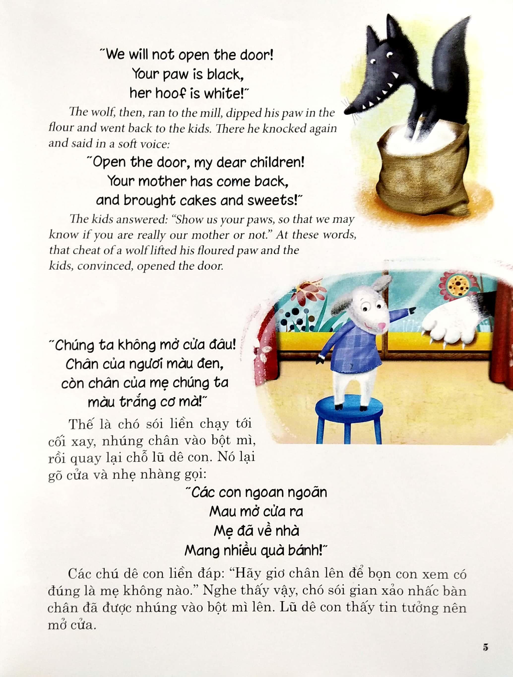 Truyện chữ to ,rõ , có nhiều truyện chứ không phải mỗi con sói và 7 chú dê con, cũng thú vị