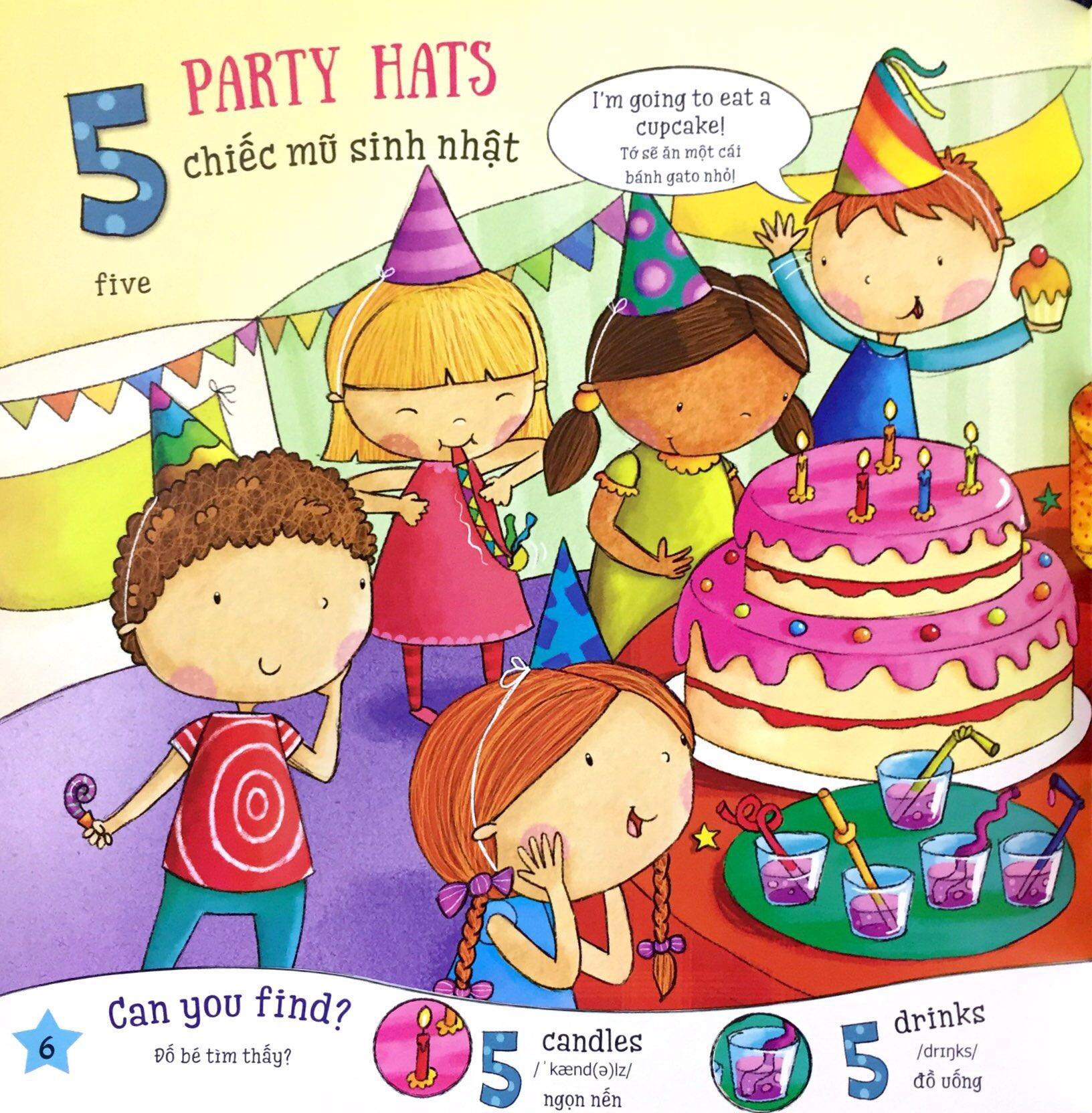 1, 2, 3, 4, 5… Những con số tinh nghịch đang nhảy múa thật vui! Cuốn sách đầu tiên của bé về con số không chỉ giúp bé học được tên tiếng Anh của các chữ số mà còn giúp bé biết cách đếm các đồ vật dễ thương bằng tiếng Anh nữa đấy. Thật thú vị phải không nào?