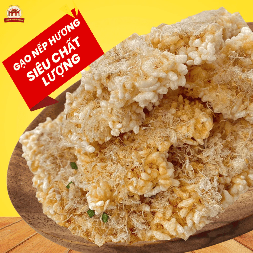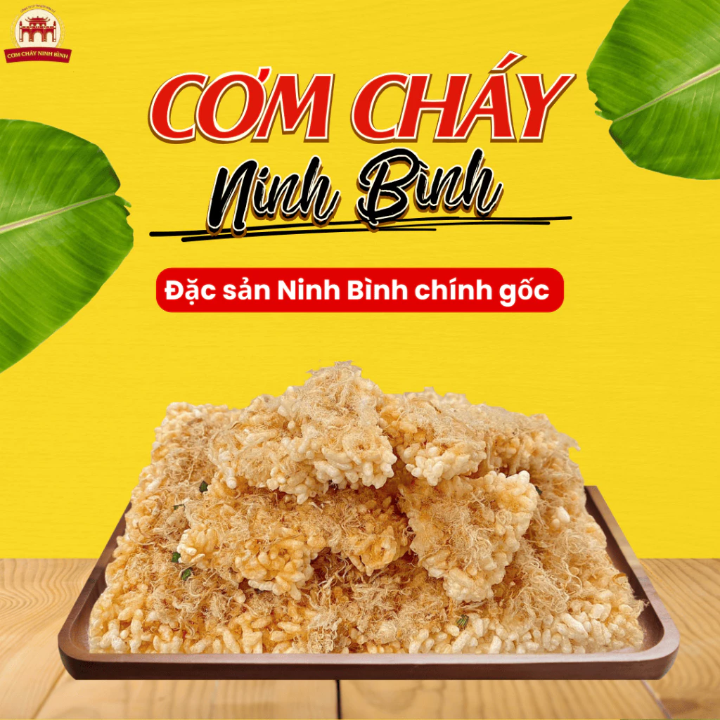 Cơm cháy Ninh Bình là đặc sản trứ danh của miền đất Cố đô Hoa Lư, được chế biến thủ công từ 100% gạo nếp tuyển chọn – loại gạo dẻo thơm, hạt to tròn, khi chiên vàng cho hương vị giòn rụm, béo ngậy và đậm đà đặc trưng.