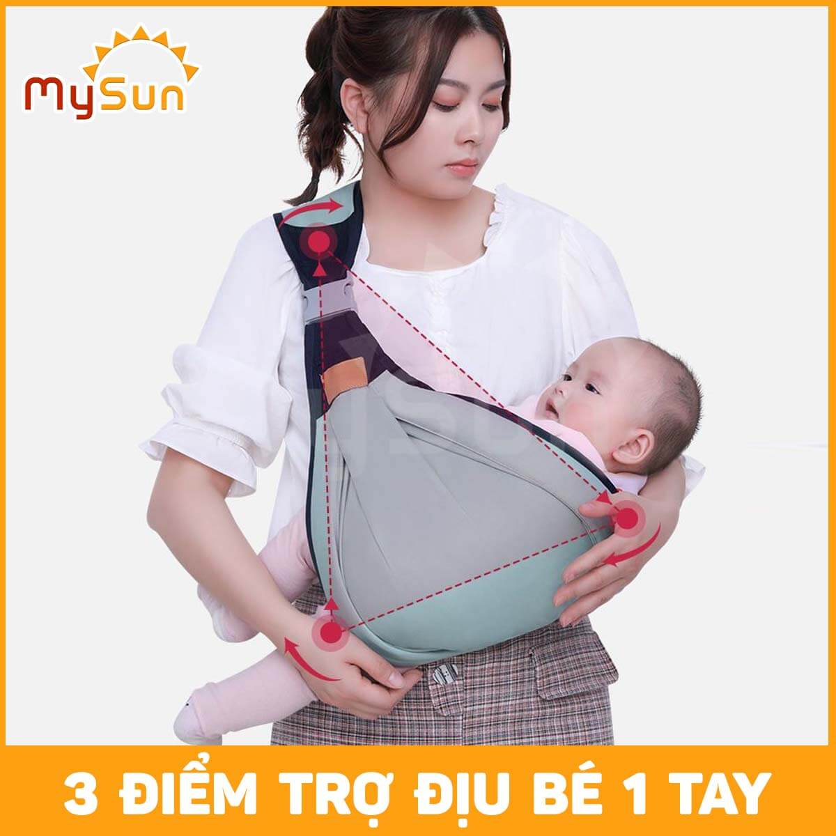 Trong những tháng của giai đoạn sơ sinh, em bé có thể thường hay quấy khóc. Vì vậy ba mẹ phải thường xuyên thay phiên bế trẻ để dỗ. Việc bồng em bé lâu cũng làm ba mẹ nhanh nhức mỏi và con cũng nằm không thoải mái. Hay khi bạn vừa muốn bế bé vừa muốn làm một việc khác cũng rất khó khăn. Do đó, ba mẹ đang phân vân để tìm ra loại địu phù hợp bế trẻ em sơ sinh. Địu nằm ngang cho bé sơ sinh chính là giải pháp hoàn hảo để đỡ cha mẹ bế trẻ. Sản phẩm đai địu bằng vải lưới cho em bé sơ sinh MySun chắc chắn sẽ khiến bạn vô cùng hài lòng.