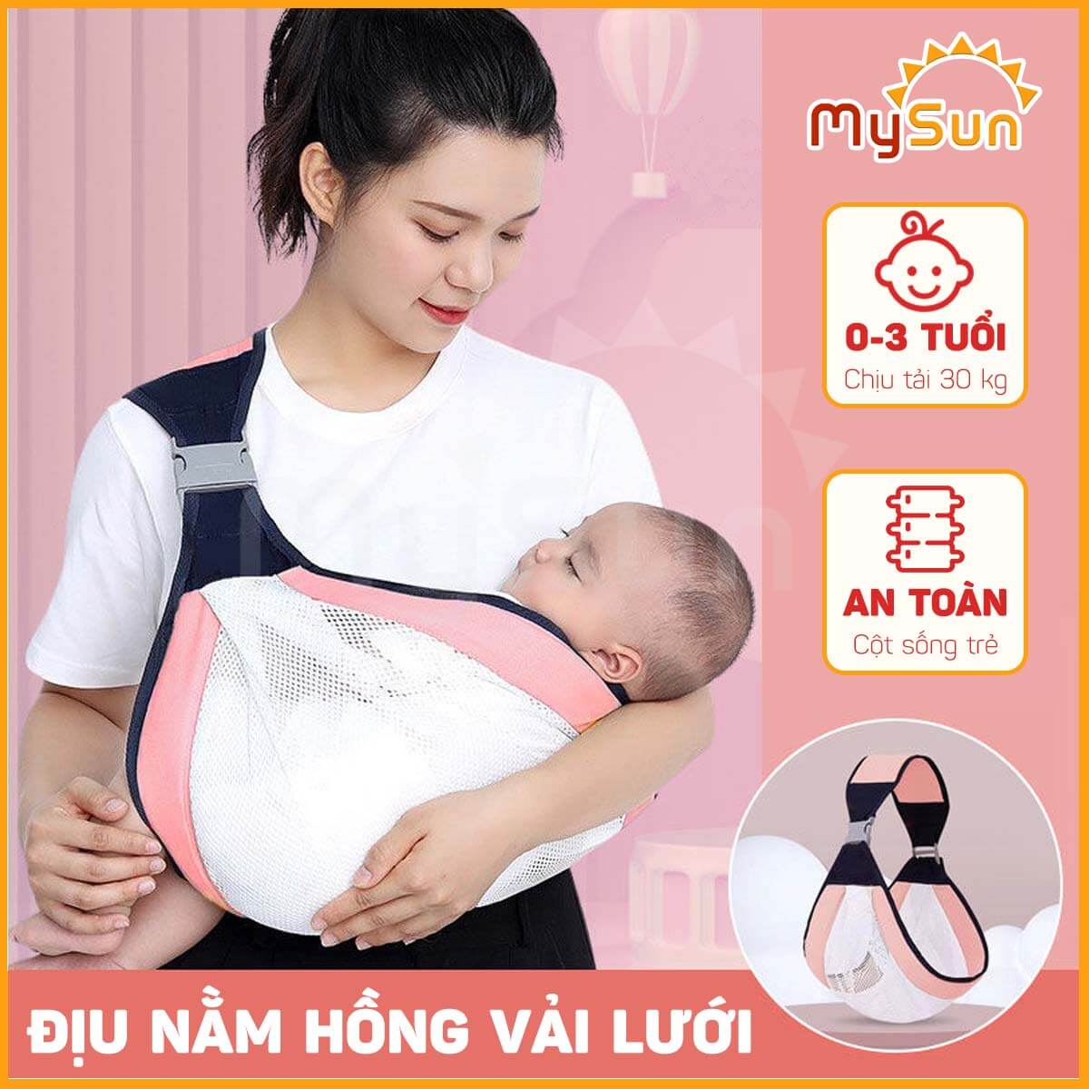 Thông số kỹ thuật Đai địu bằng vải lưới giá rẻ cho em bé điệu trẻ sơ sinh bế nằm ngang MySun