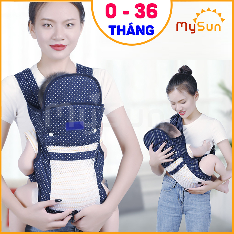 Thông số kỹ thuật Đai địu vải 4 tư thế có đỡ cổ cho bé sơ sinh, trẻ em 36 tháng tuổi ngồi xe máy an toàn - MySun