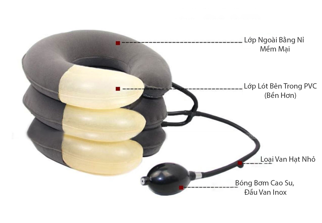 Với cơ chế làm phồng nhờ bơm hơi tay, giúp người dùng điều chỉnh được độ hơi cứng / mềm mà mình mong muốn, không bị cấn, tức cổ khi ngủ
