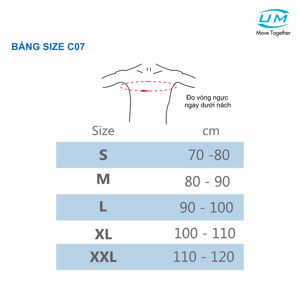 Đo vòng ngực dưới nách để chọn size phù hợp (xem bảng size tại hình sản phẩm)