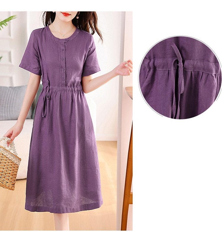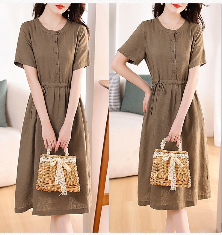 Thông số kỹ thuật Đầm linen nữ trơn tay ngắn kết hợp phối cúc và rút eo , có nhiều màu dễ mặc đi chơi hay đi làm Da217