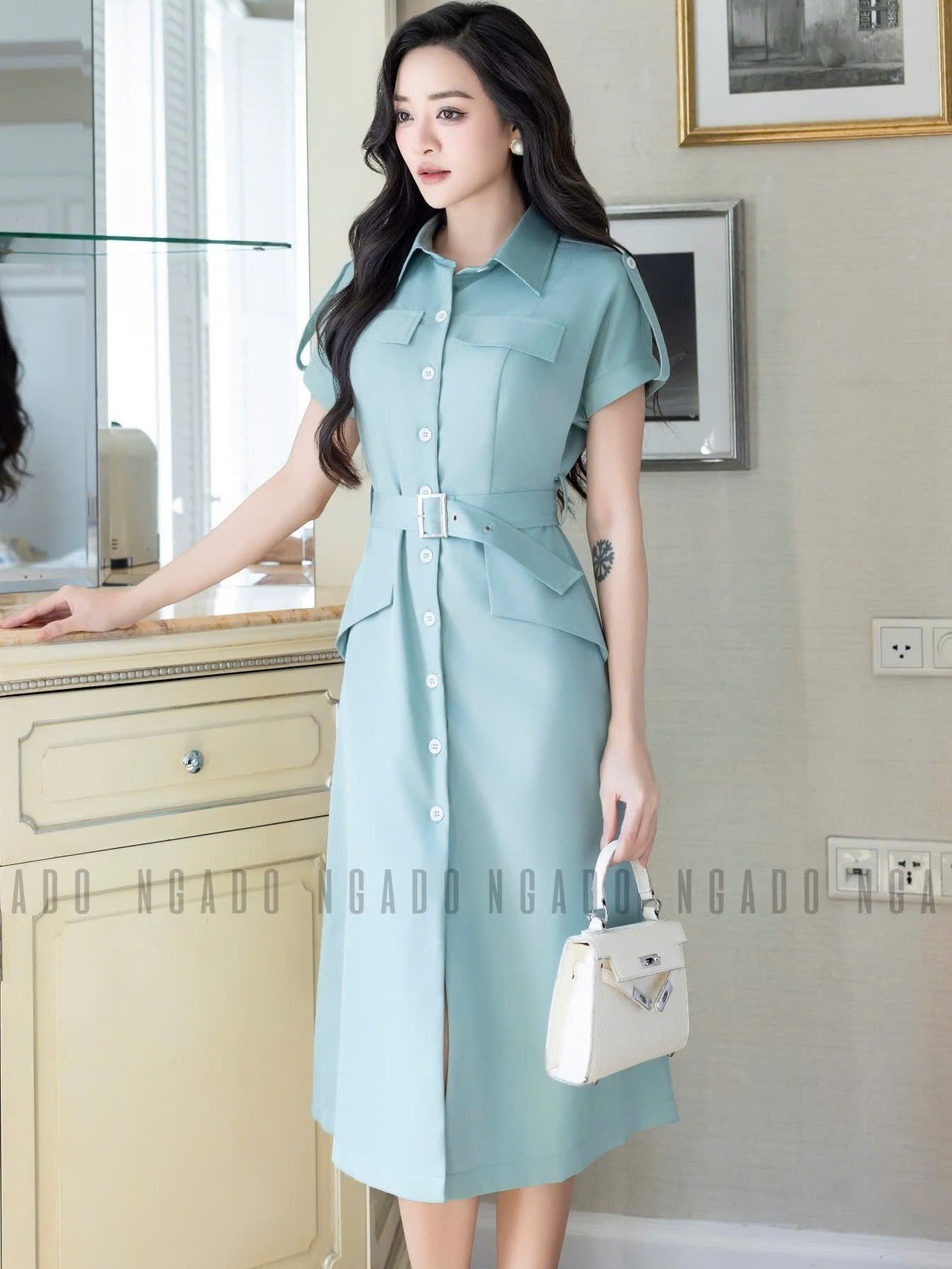 Thông số kỹ thuật Đầm sơ mi xanh mint NGADO , đầm công sở , đầm dự tiệc