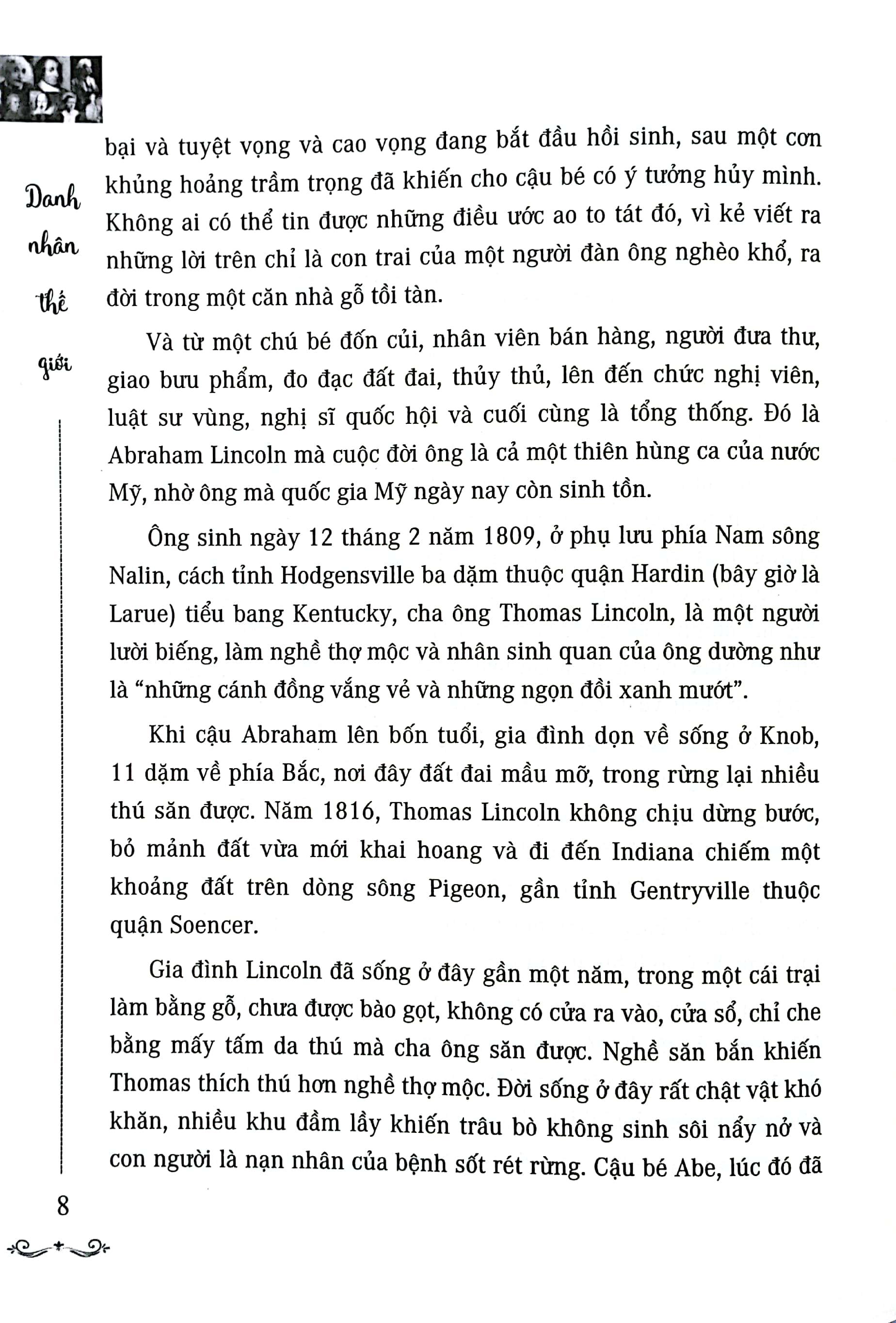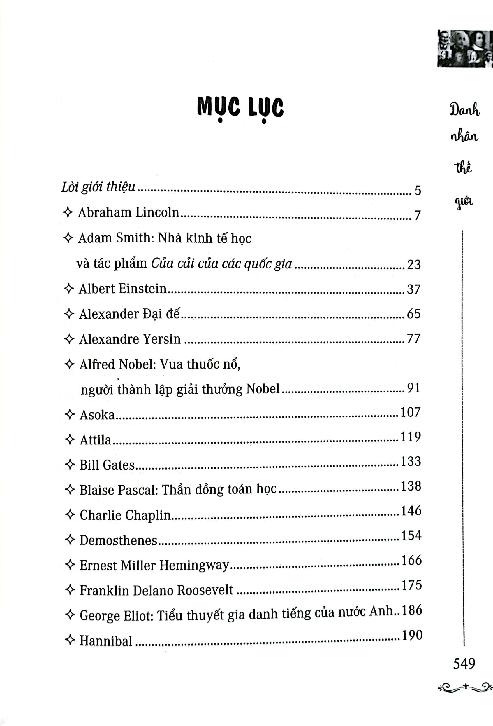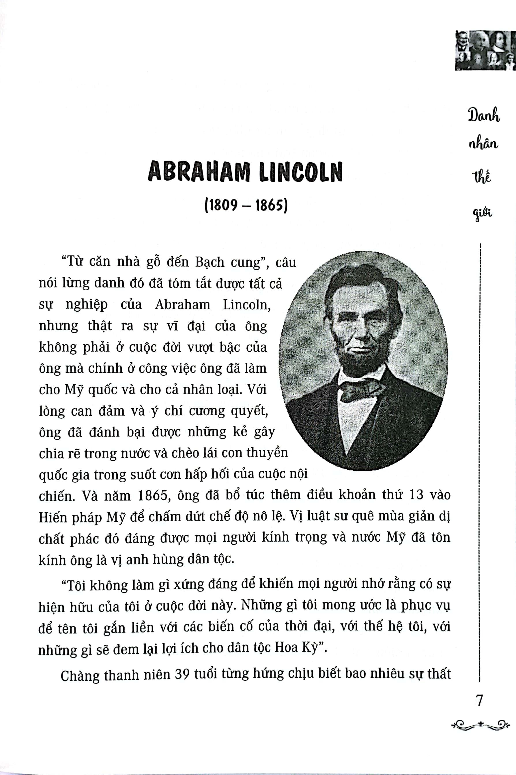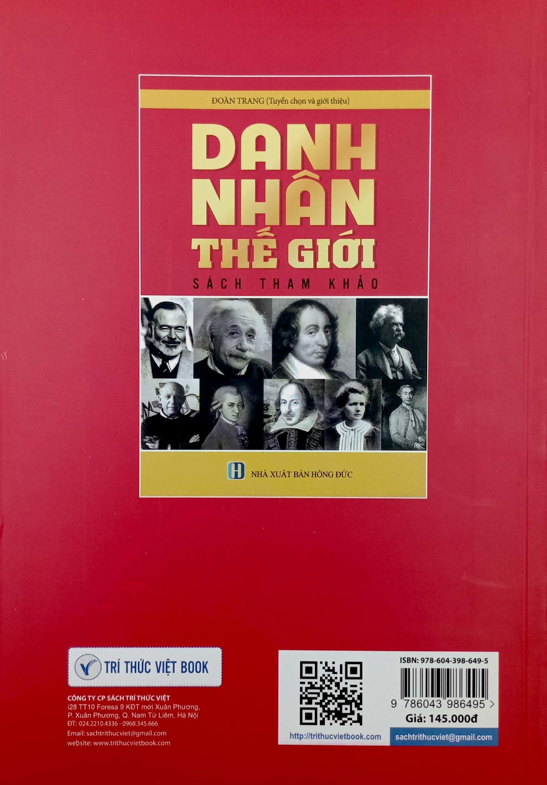 Cuốn sách Danh Nhân Thế Giới mà Công ty CP sách Trí Thức Việt đã liên kết và phát hành. Hy vọng sẽ truyền tải được phần nào những kiến thức lịch sử, những tư liệu quý giá về sự hình thành cũng như phát triển của khoa học hiện tại, những thành công trong nhiều lĩnh vực, cũng như quân sự… đã đem lại những thông tin bổ ích thông qua những danh nhân của thế giới nhằm góp thêm phần kiến thức bổ sung cho hậu thế tương lai.
