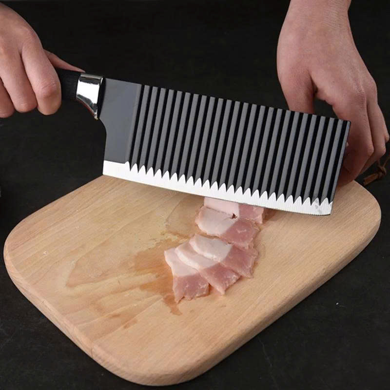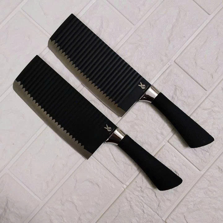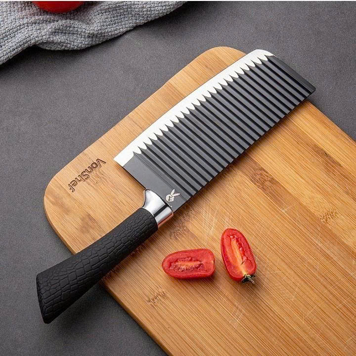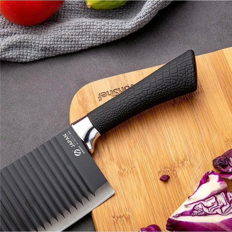Dao bếp Nhật thiết kế gợn sóng giảm tiếp xúc với thực phẩm , chống dính ,không rỉ , sắc bén cán dao bọc cao su êm ái chống trơn trượt khi cầm