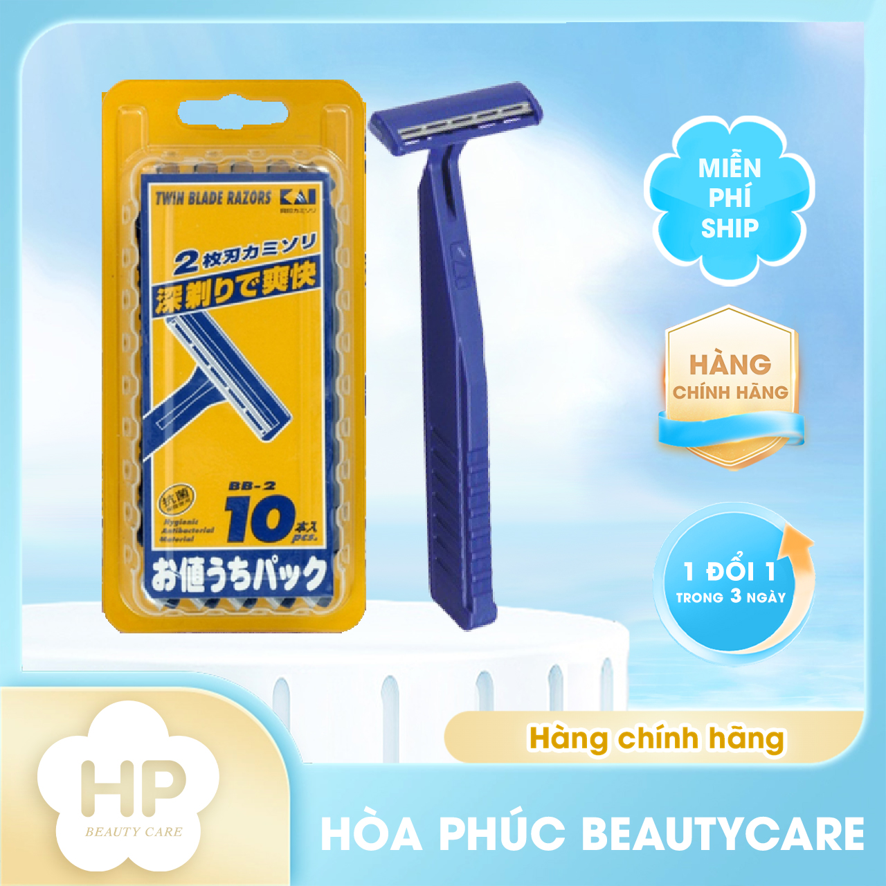 Dao Cạo Râu 2 Lưỡi Kép Kai Razor 00915 Thân Nhựa Màu Xanh (Set 10 Cây)