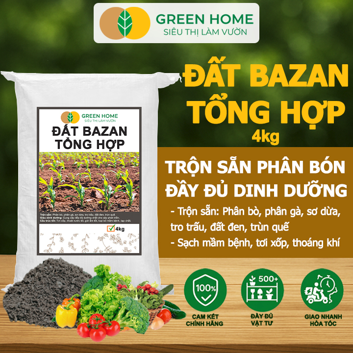 Đất Bazan GreenHome, Bao 4kg, Đất Trồng Cây, Bổ Sung Phân Hữu Cơ,Trồng Hoa Hồng, Kiểng