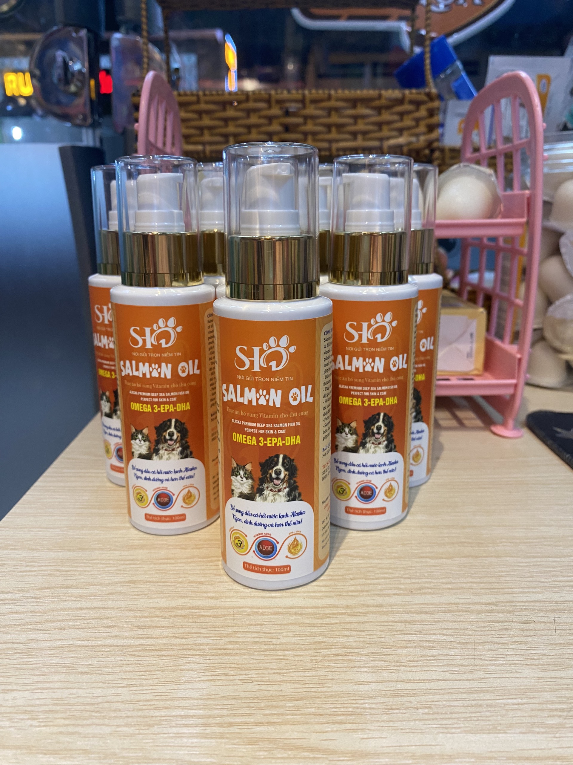 Dầu cá hồi Salmon Oil SHD là một thực phẩm bổ sung: - Hỗ trợ giảm đáng kể lượng cholesterol trong máu cho chó mèo. - Axit Béo Omega-3 với EPA & DHA sẽ giúp bộ lông của thú cưng của bạn luôn dày và bóng. - Dầu cá hồi được khuyên dùng cho các vấn đề sức khỏe như: lông giòn và xỉn màu, rụng lông nhiều, gàu, da khô, tóc mỏng, viêm da, ngứa da, dị ứng, chàm, các vấn đề về sắc tố, rối loạn hệ thống miễn dịch, các vấn đề về khả năng sinh sản. - Sản phẩm không có hương vị nhân tạo hoặc chất bảo quản, không có màu tổng hợp - Không có dẫn xuất ngũ cốc, ngô hoặc đậu nành Chỉ định: - Thú cưng có vấn đề về xương khớp. - Dị ứng ngoài da - chàm, nấm, vảy cá, rụng lông nhiều, thời kỳ thay lông, - Thời kỳ tăng trưởng. - Tốt cho tim mạch, giảm lượng cholesterol xấu trong máu & tăng mức độ cholesterol tốt. - Nâng cao hệ miễn dịch - Tăng cường mùi vị của thức ăn - được khuyến khích cho chó mèo kén ăn. Liều lượng khuyến cáo mỗi ngày: - Trọng lượng dưới 10 kg: < 2 - 4 ml - Trọng lượng 11 - 20 kg: < 4 - 8 ml - Trọng lượng 21 - 30 kg: < 8 - 12 ml - Trọng lượng hơn 30 kg: < 12 - 16 ml Tùy theo sở thích của thú cưng, có thể cho ăn trực tiếp hoặc trộn với thức ăn
