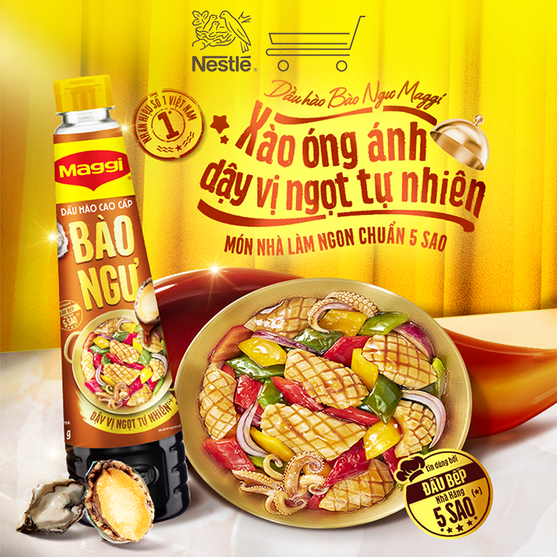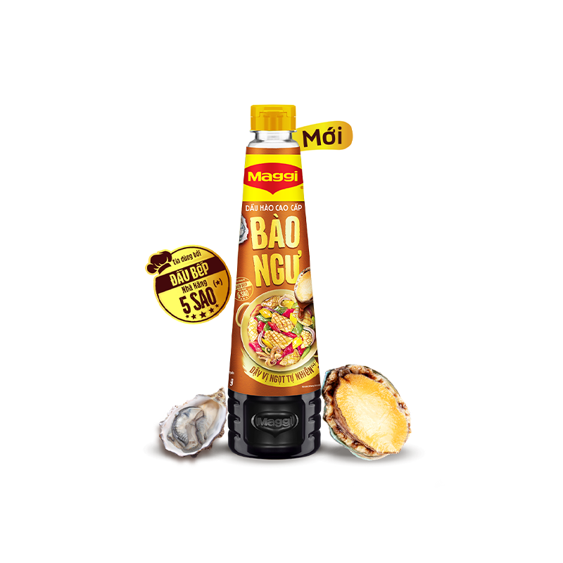 - Dầu hào cao cấp Maggi bào ngư cho món xào ngon tự nhiên, thơm và sáng bóng, món kho đậm đà thấm vị, cho món nướng thêm mọng và mềm.