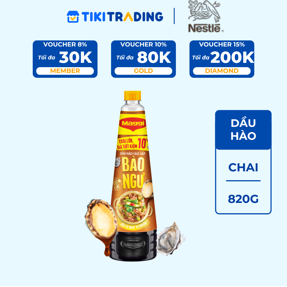 Dầu Hào Cao Cấp Nestlé MAGGI Bào Ngư chai 820g - 1 bước xào, óng ánh chuẩn nhà hàng. Chai lớn, giá tiết kiệm 10%