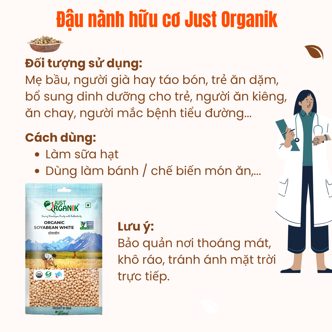 Đậu Nành Đậu Tương Hữu Cơ Không Biến Đổi Gen Làm Sữa Dinh Dưỡng Cho Bé Just Organik Nhập Khẩu Ấn Độ