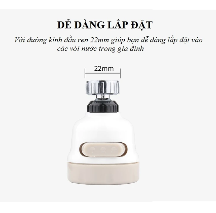 - Đầu nối chuyển đổi có thể lắp các vòi ren 22mm