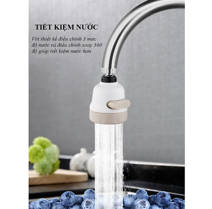 - Đầu vòi tăng áp với 3 chức năng phun nước giúp tăng áp lực nước cho vòi rửa chén (vòi rửa bát) đồng thời tiết kiệm nước đến 30%.