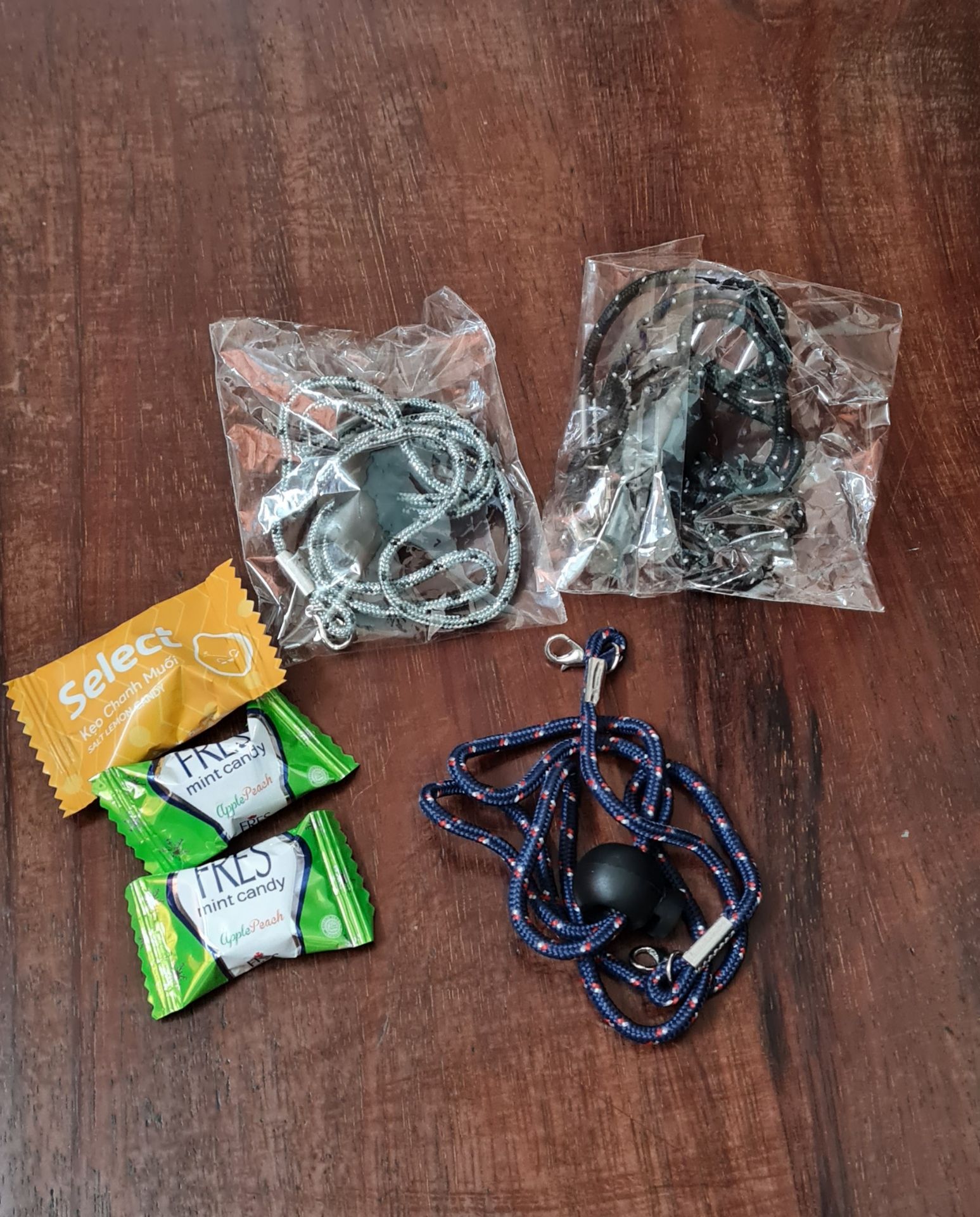 thấy vài người sử dụng rồi nên tìm mua; rất tiện nhất là khi ra ngoài ăn uống, lúc tháo khẩu trang ra treo hẳn lên cổ; sau khi ăn uống xong yên tâm đeo khẩu trang lại không lo khẩu trang bị bẩn