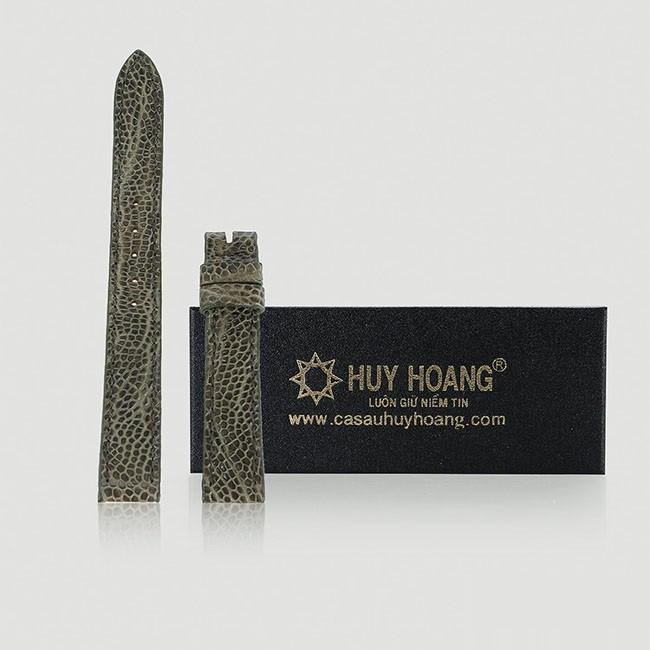 Thông số kỹ thuật Dây đồng hồ Huy Hoàng da đà điểu size 12, 14 màu xanh rêu HC8429
