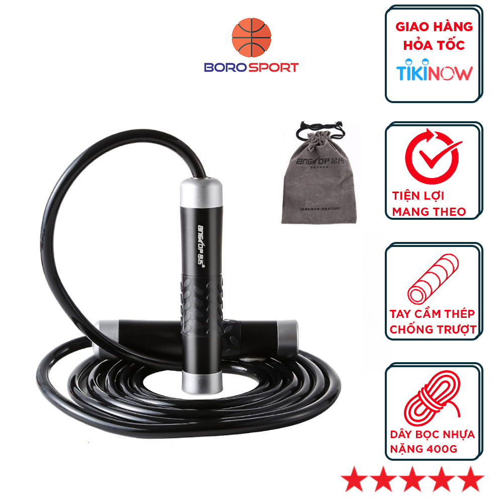 Thông số kỹ thuật Dây nhảy thể lực CLEACCO trọng lượng nặng 400g , tay cầm kim loại đầm tay ( dùng trong Boxing, Muay Thai ) giúp đốt cháy calo nhanh + tặng kèm túi vải BORO SPORT
