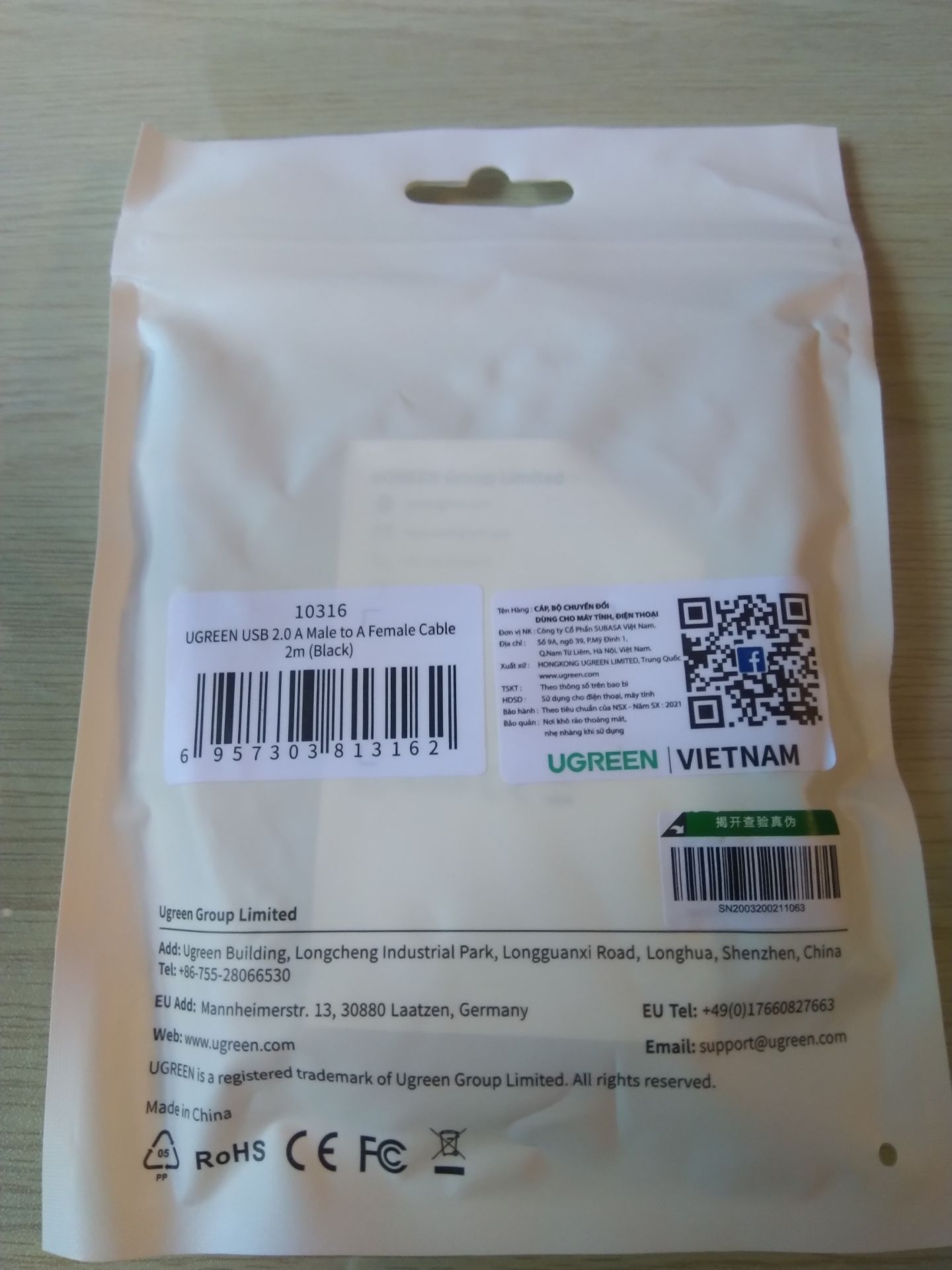 Thông số kỹ thuật Dây nối dài USB 2.0 (1 đầu đực, 1 đầu cái) dài 2m UGREEN US103 10316 - Hàng Chính Hãng