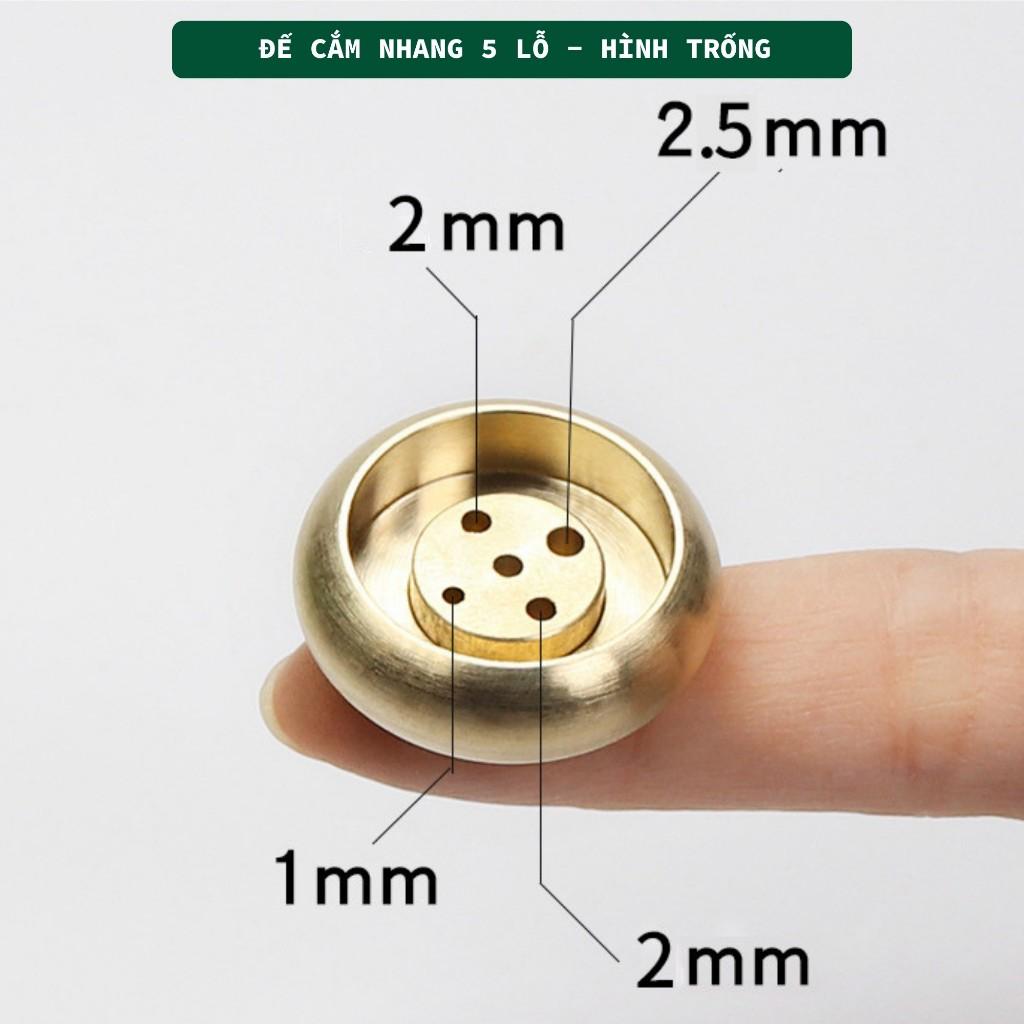 Đế hình trống 5 lổ (đen): 2.5cm ngang x 1cm cao, nặng 20gr. 5 Khe nhang: 1.5mm, 2mm, 2.5mm
