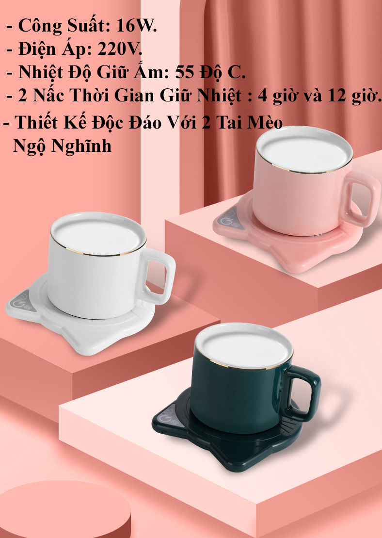 đế hâm nhìn rất xinh, làm nóng nhanh nữa nhỏ gọn dễ dùng, rất hợp với những đứa thích uống đồ nóng như mình
