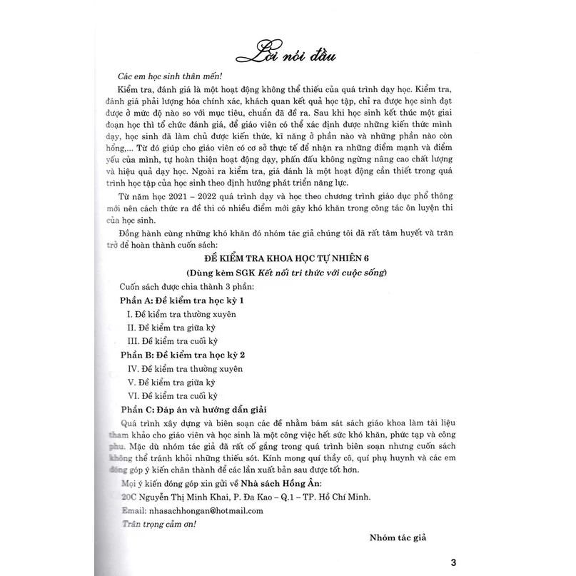 Quá trình xây dựng và biên soạn các đề nhằm bám sát sách giáo khoa làm tài liệu tham khảo cho giáo viên và học sinh là một công việc hết sức khó khăn, phức tạp và công phu. Mặc dù nhóm tác giả đã rất cố gắng trong quá trình biên soạn nhưng cuốn sách không thể tránh khỏi những thiếu sót. Kính mong quí thầy cô, quí phụ huynh và các em đóng góp ý kiến chân thành để các lần xuất bản sau được tốt hơn.