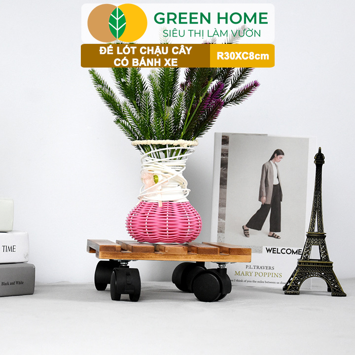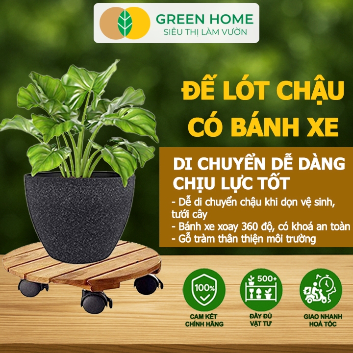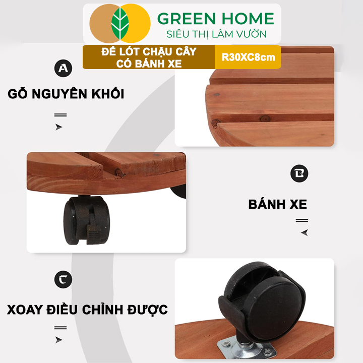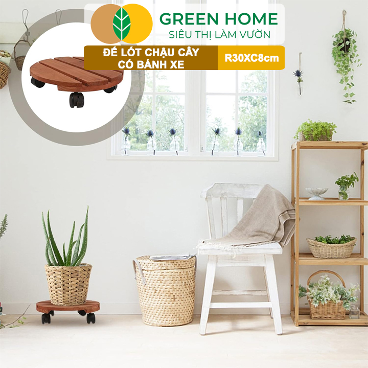 Thông số kỹ thuật Đế Lót Chậu Cây Greenhome, R30xc8cm, Bằng Gỗ Có Bánh Xe, Thân Thiện Môi Trường, Tiện Lợi, Di Chuyển Chậu Nặng Dễ Dàng