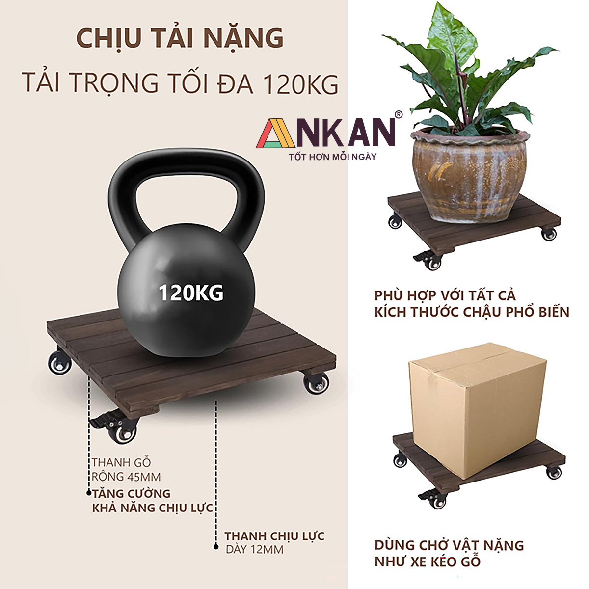Thông số kỹ thuật Đế Lót Chậu Cây Có Bánh Xe Cao Cấp ANKAN Hình Vuông Màu Đen 35x35Cm, Tải trọng 150 Kg, Di Chuyển Chậu Cây Nặng Dễ Dàng, Êm Ái